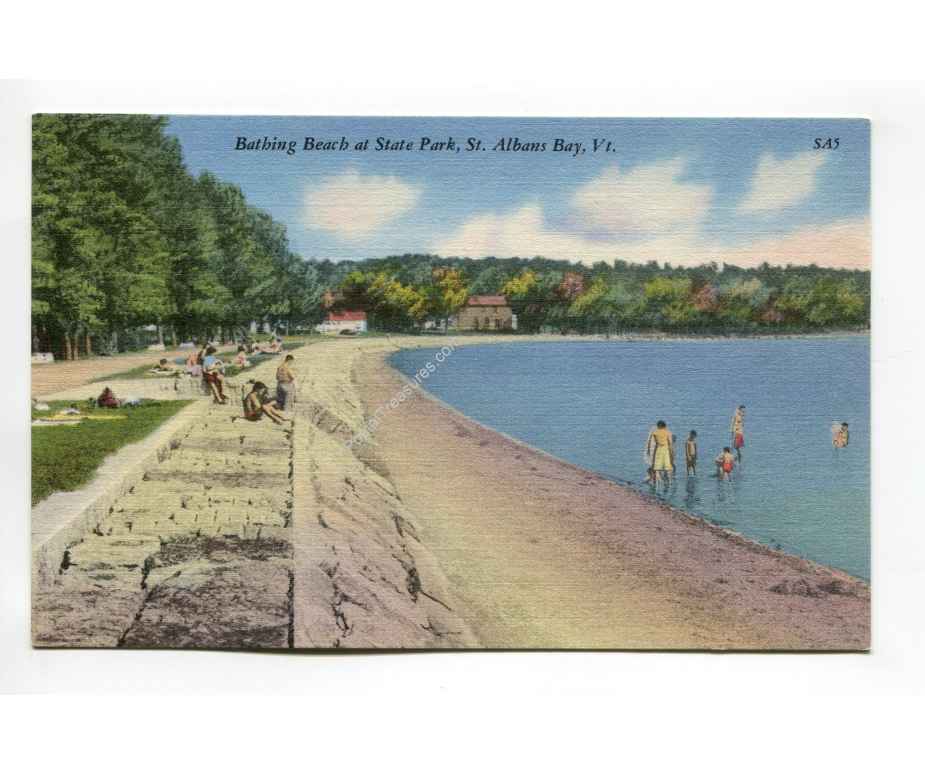 Fountain Taylor Park St Albans Vermont postcard Used Condition - noticeable corner/edge wear, crease in corners, soiling/marks ..