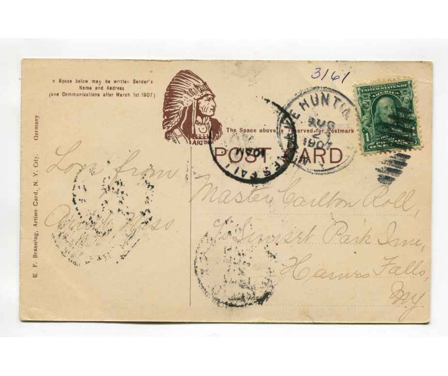 Chichesters Homestead Huntington New York postcard Used Condition - noticeable corner/edge wear, heavy crease bottom right corner, marks on ca..
