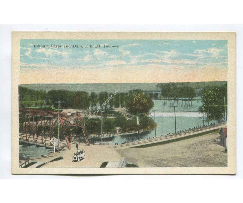 Elkhart River and Dam Plant Elkhart Indiana postcard