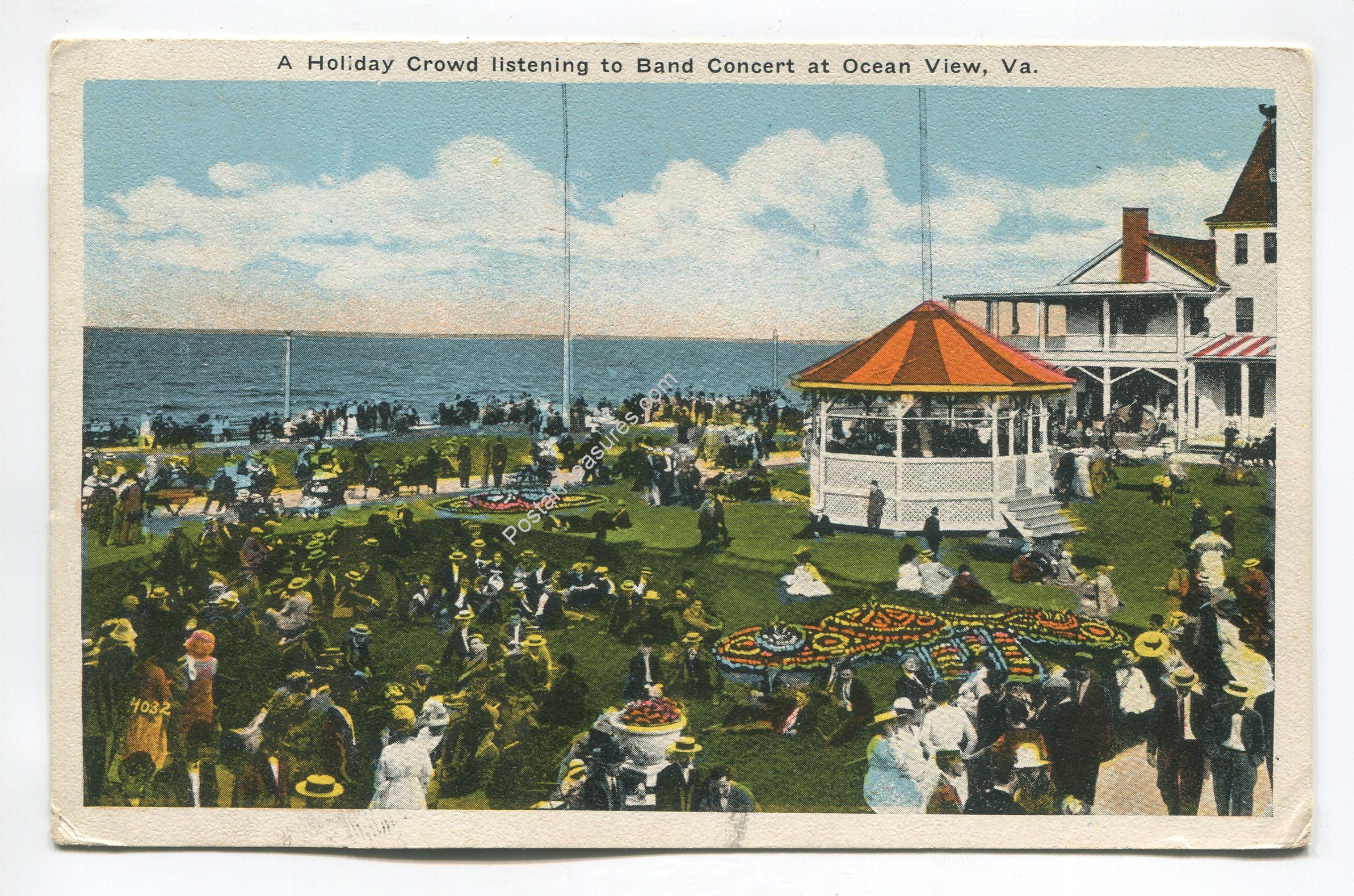 A Holiday Crowd listening to Band Concert at Ocean View Virginia postcard