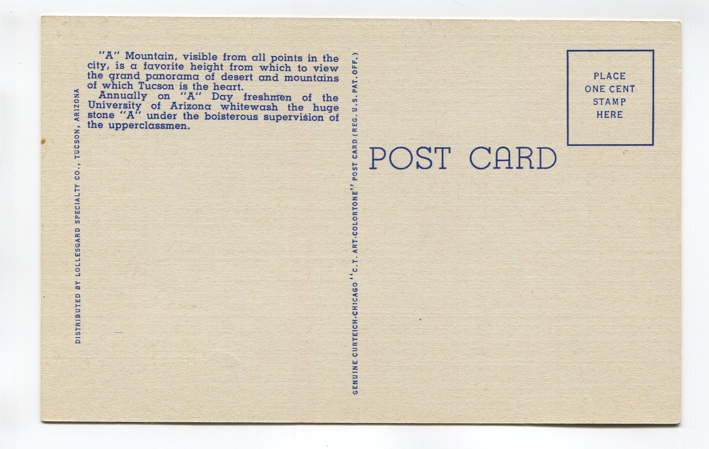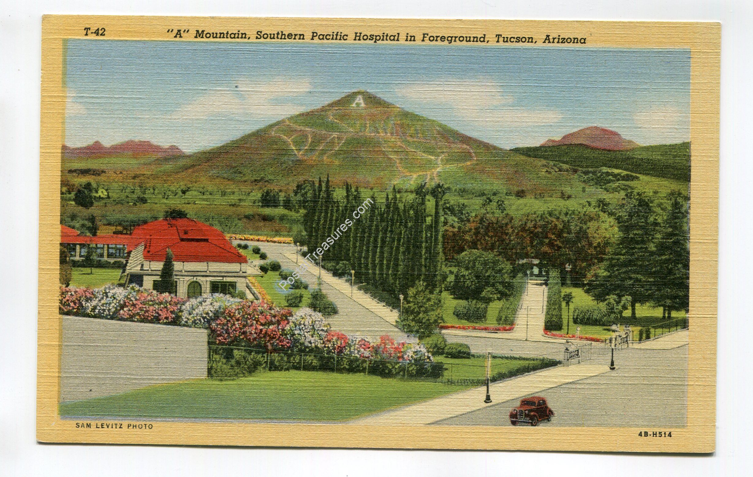 A Mountain Southern Pacific Hospital in Foreground Tuscon Arizona postcard