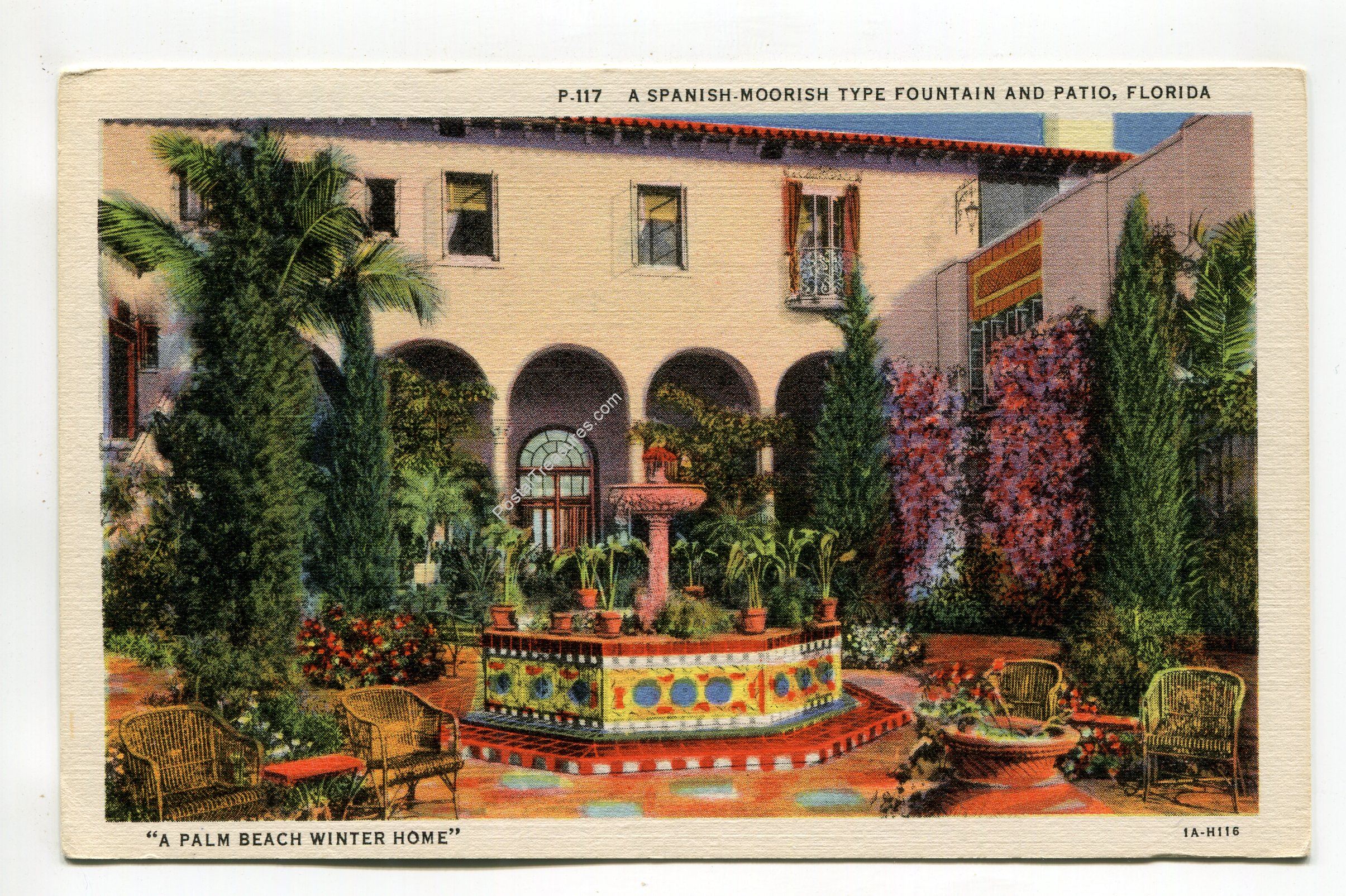 A Spanish-Moorish type fountain and patio Florida – A Palm Beach winter home postcard