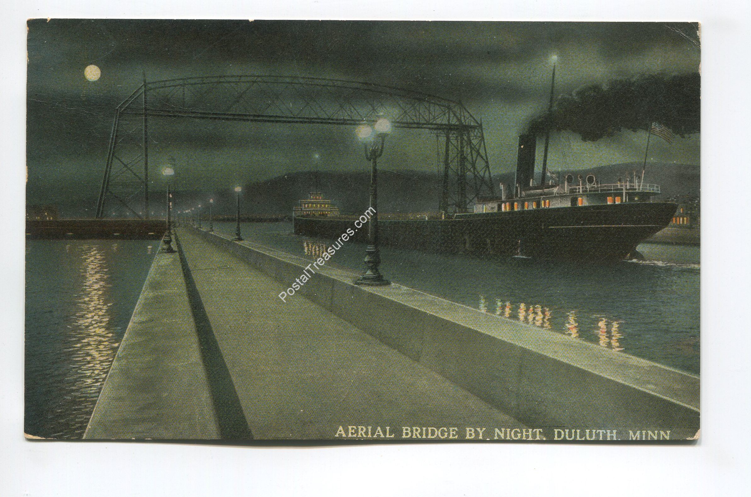 Aerial Bridge by Night Duluth Minnesota postcard