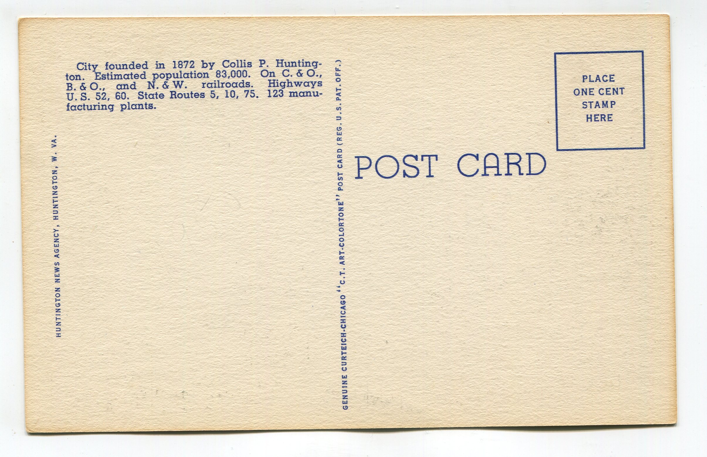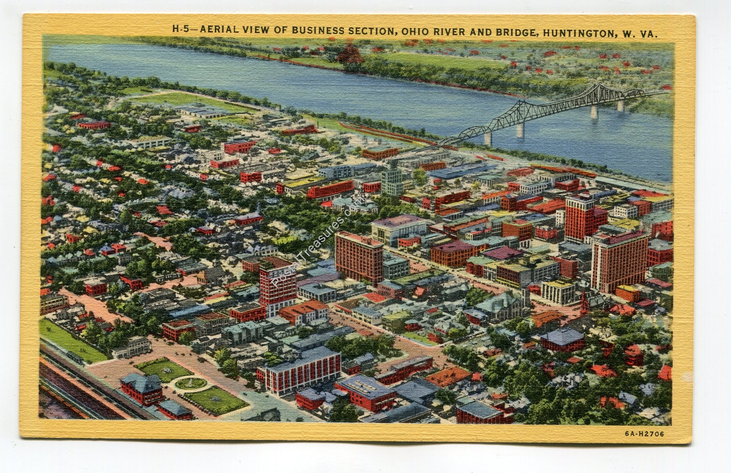 Aerial View of Business Section Ohio River and Bridge Huntington West Virginia postcard