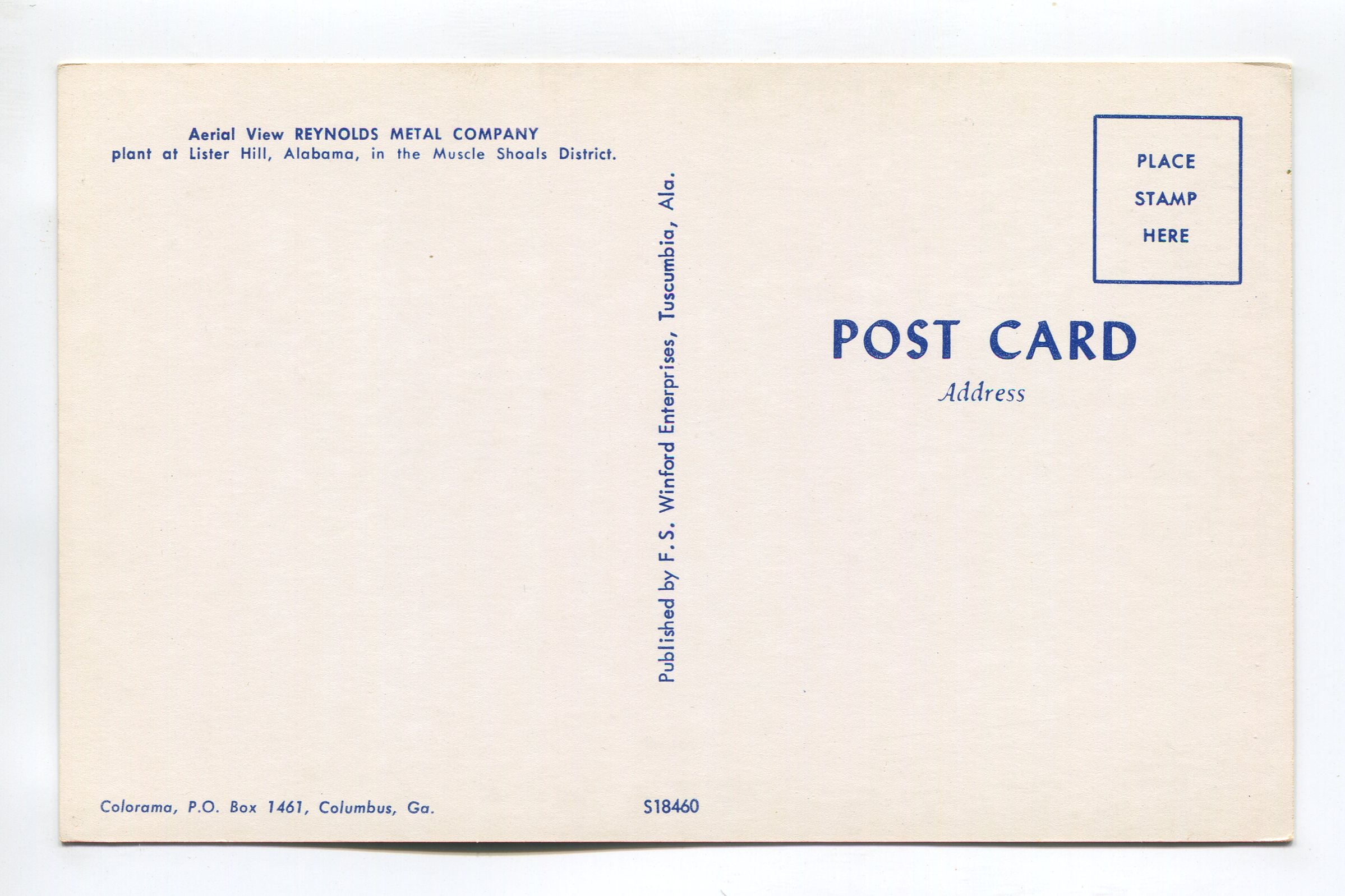 Aerial View Reynolds Metal Company Plant at Lister Hill Alabama postcard