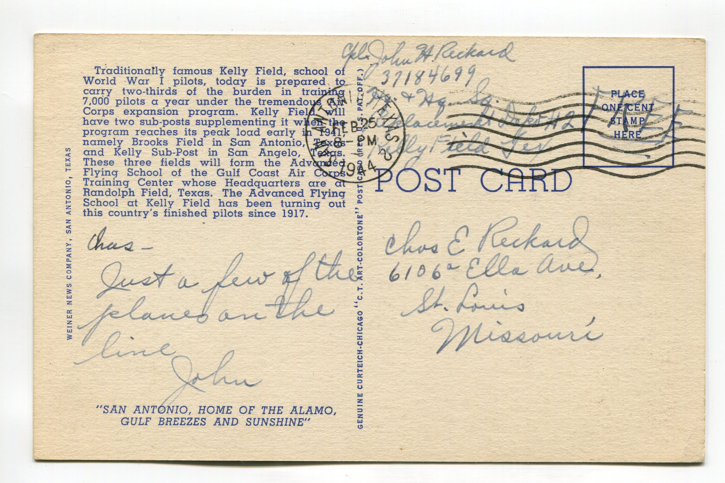 Airplanes on Line Kelly Field Texas San Antonio Texas postcard