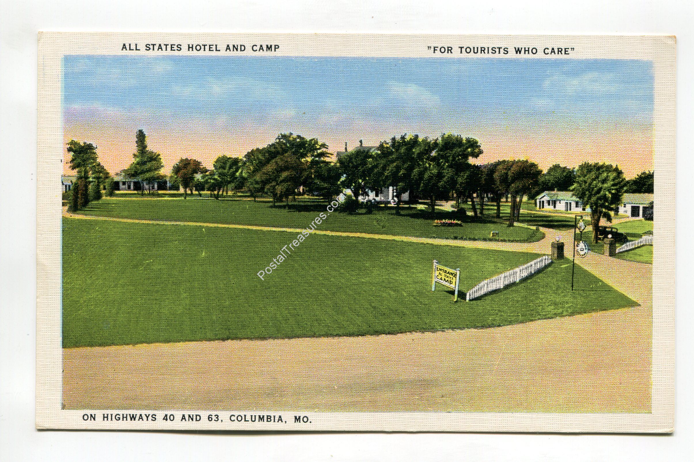 All States Hotel and Camp on Highway 40 and 63 Columbia Missouri postcard