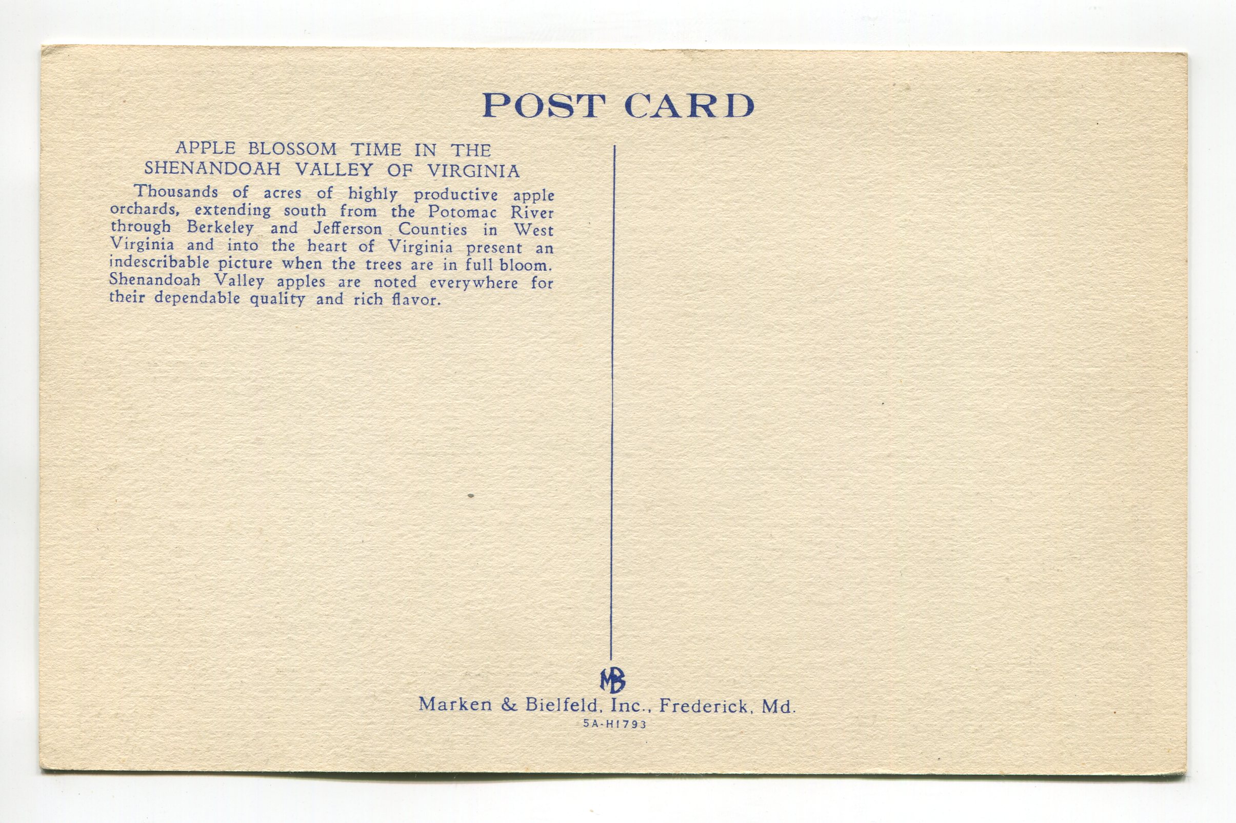 Apple Blossom Time Shenandoah Valley of Virginia postcard