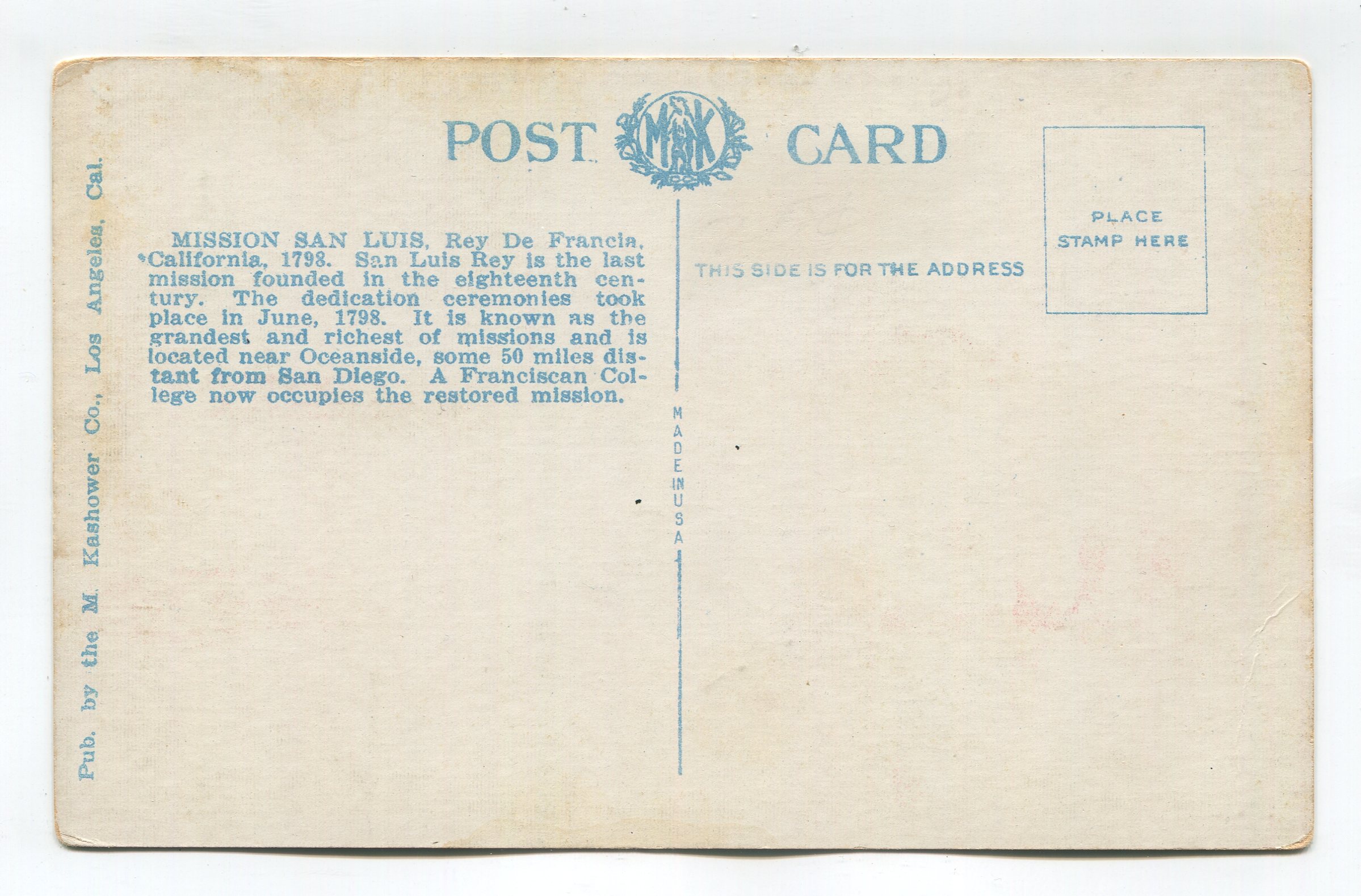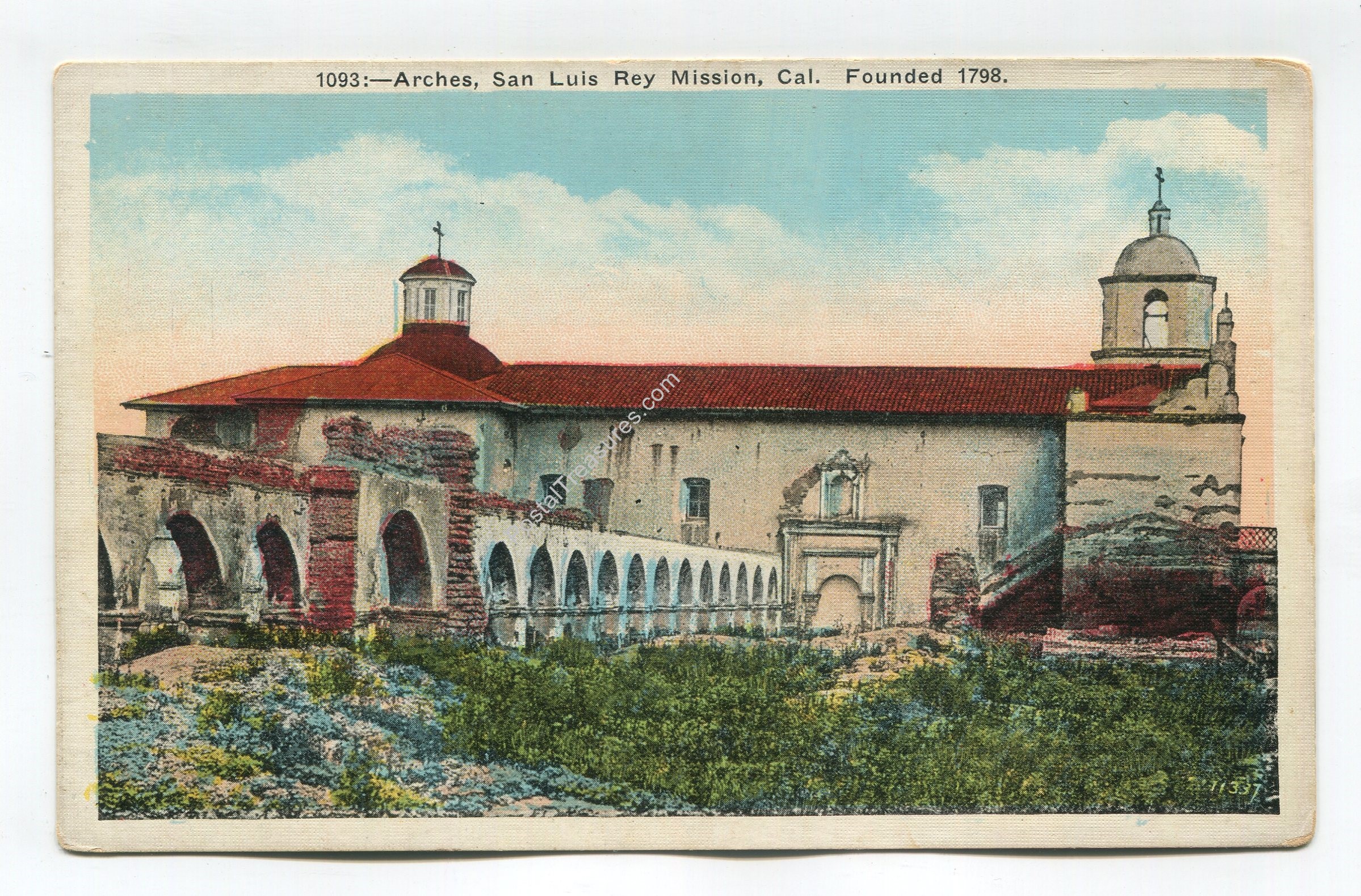 Arches San Luis Rey Mission California Founded 1798 postcard