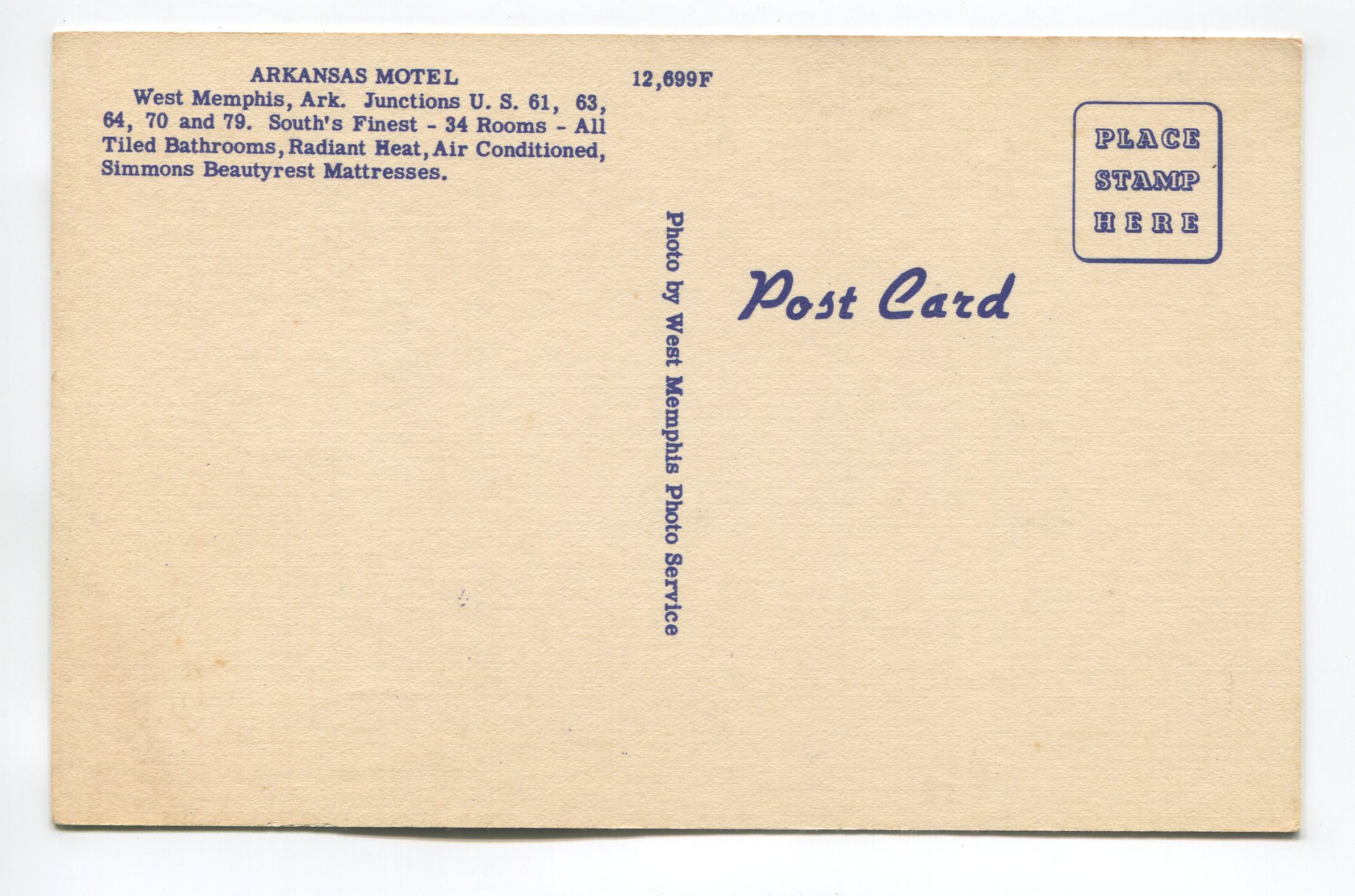 Arkansas Motel West Memphis Arkansas postcard