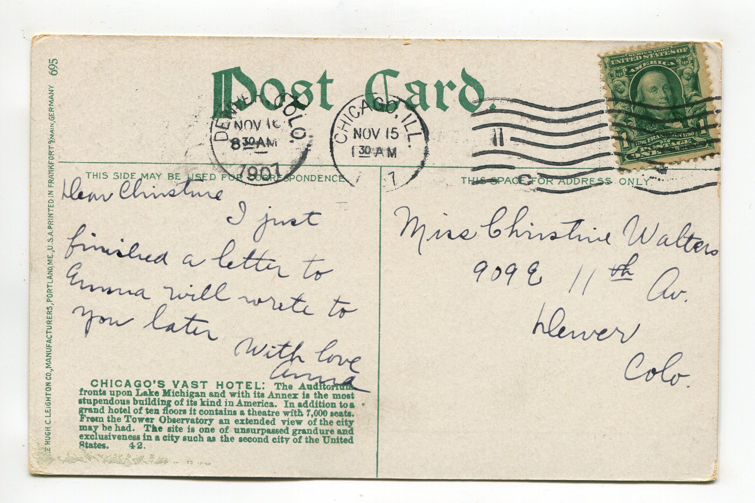 Auditorium and Annex Chicago Illinois postcard