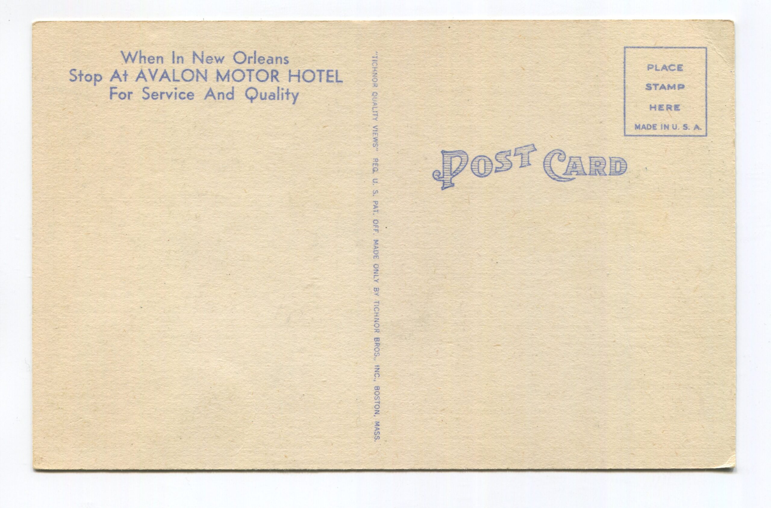 Avalon Motor Hotel New Orleans Louisiana postcard