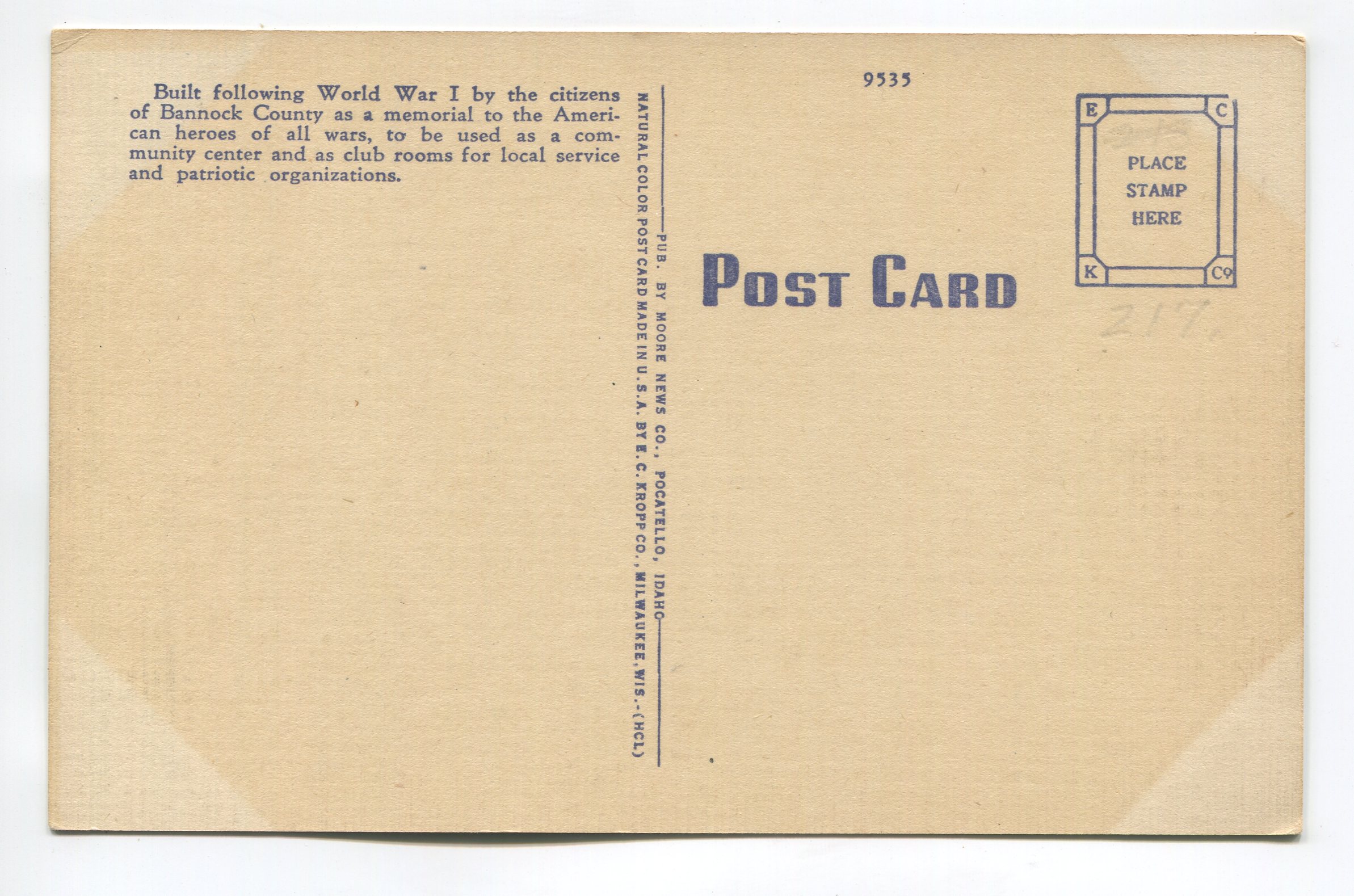 Bannock County Memorial Building Pocatello Idaho postcard