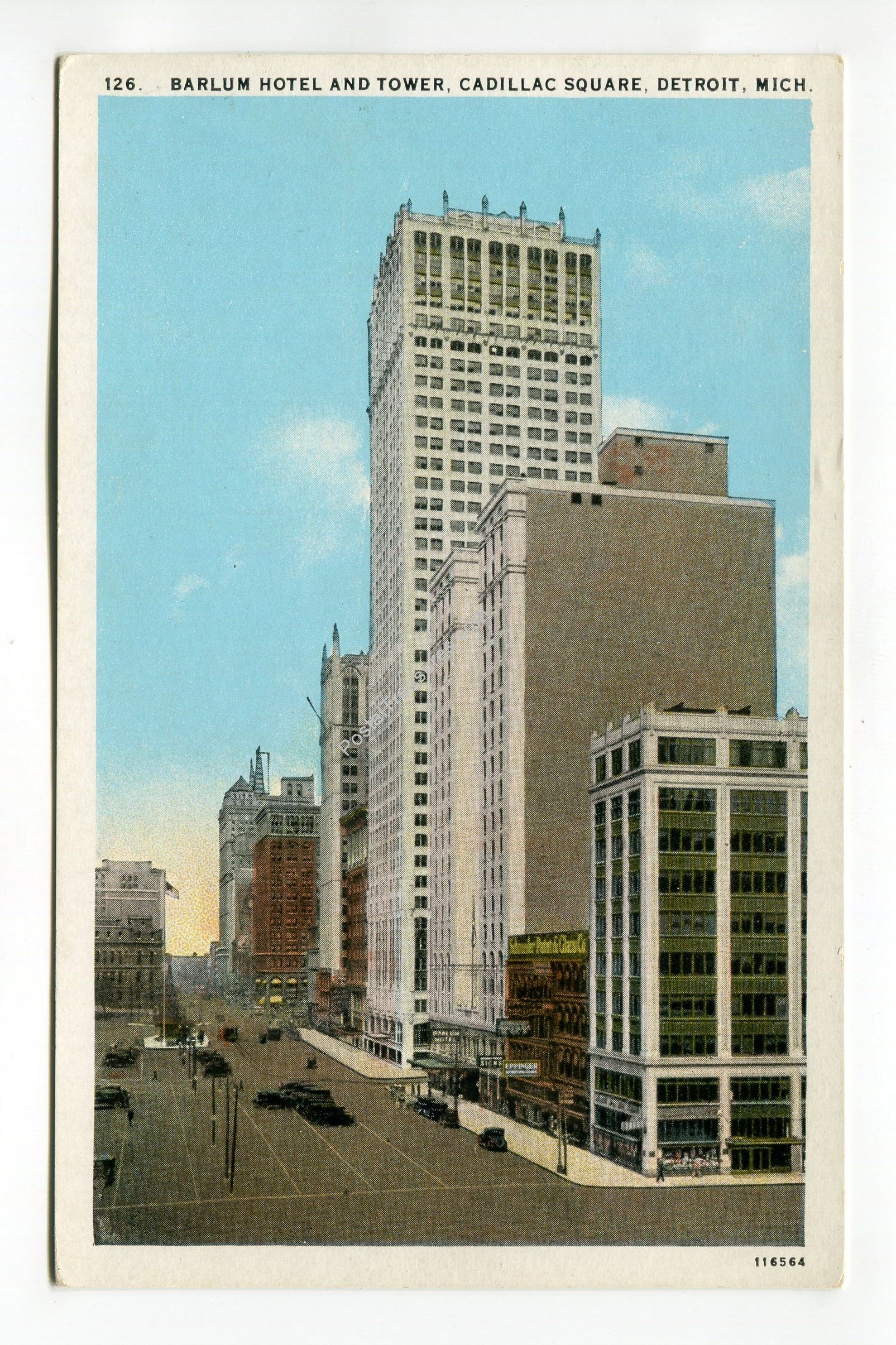 Barlum Hotel and Tower Cadillac Square Detroit Michigan postcard