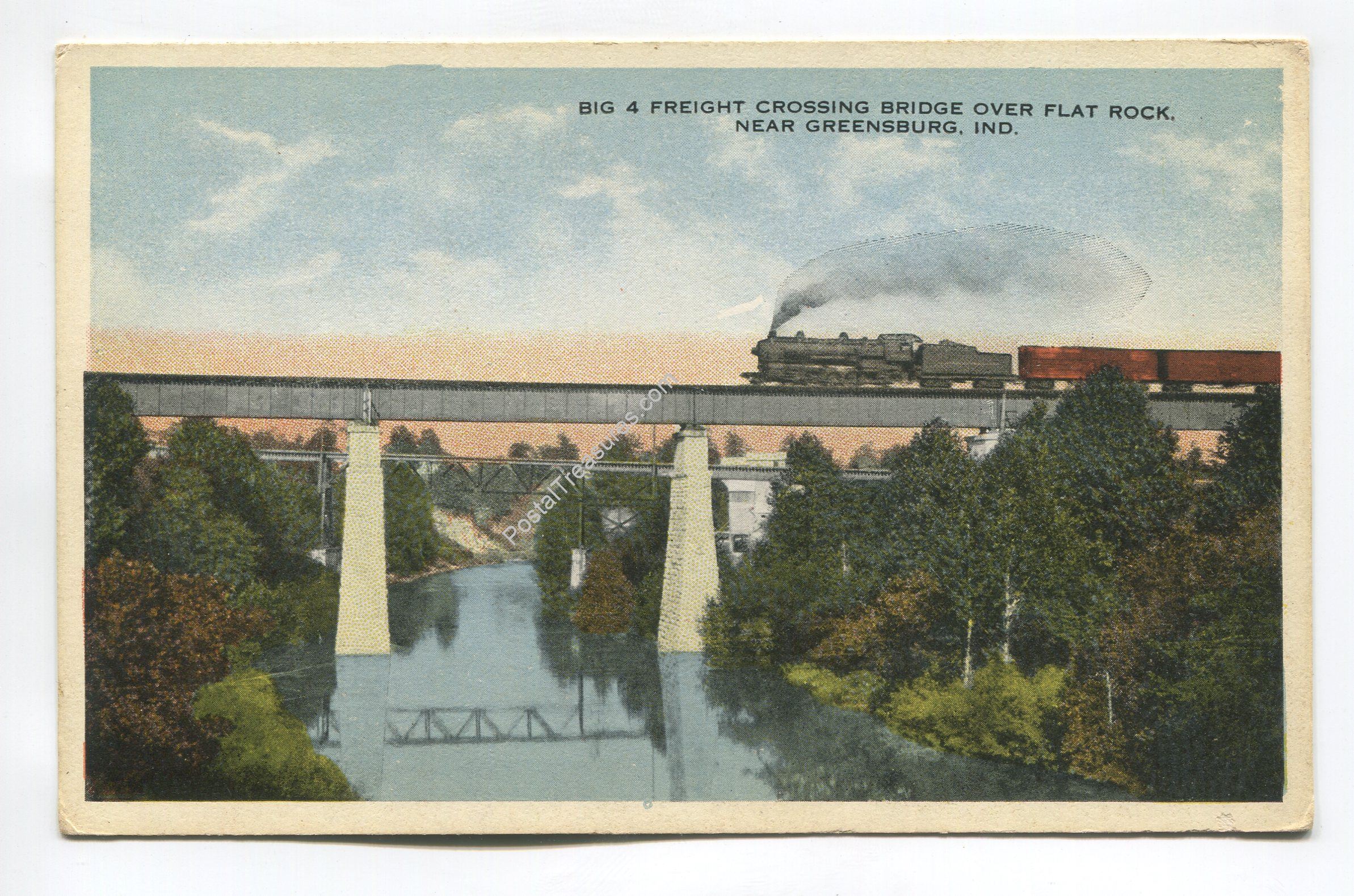 Big 4 Freight Crossing Bridge over Flat Rock near Greensburg Indiana postcard