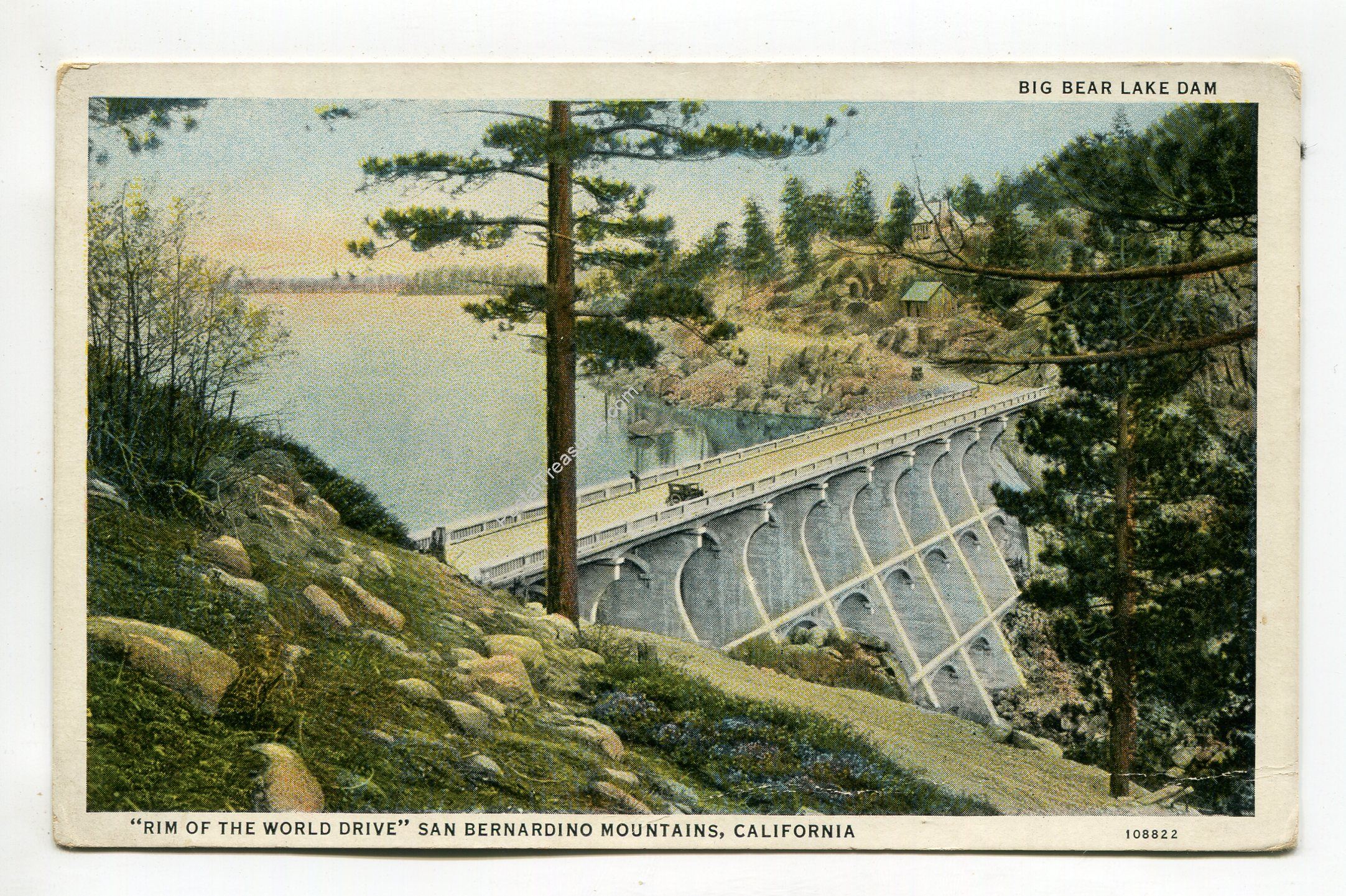 Big Bear Lake Dam Rim of the World Drive San Bernardino Mountains California postcard