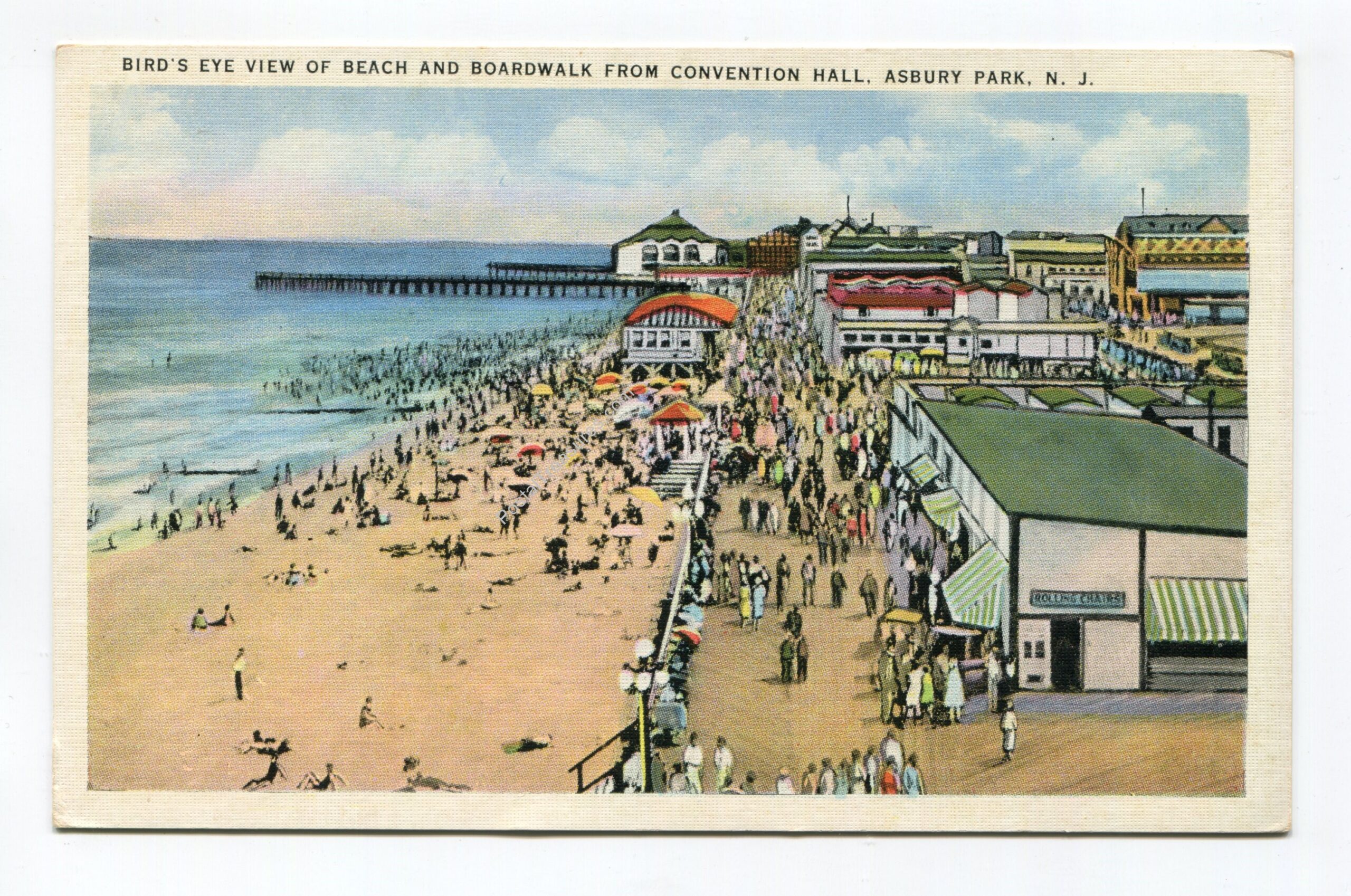 Bird’s Eye View of Beach and Boardwalk from Convention Hall Asbury Park New Jersey postcard
