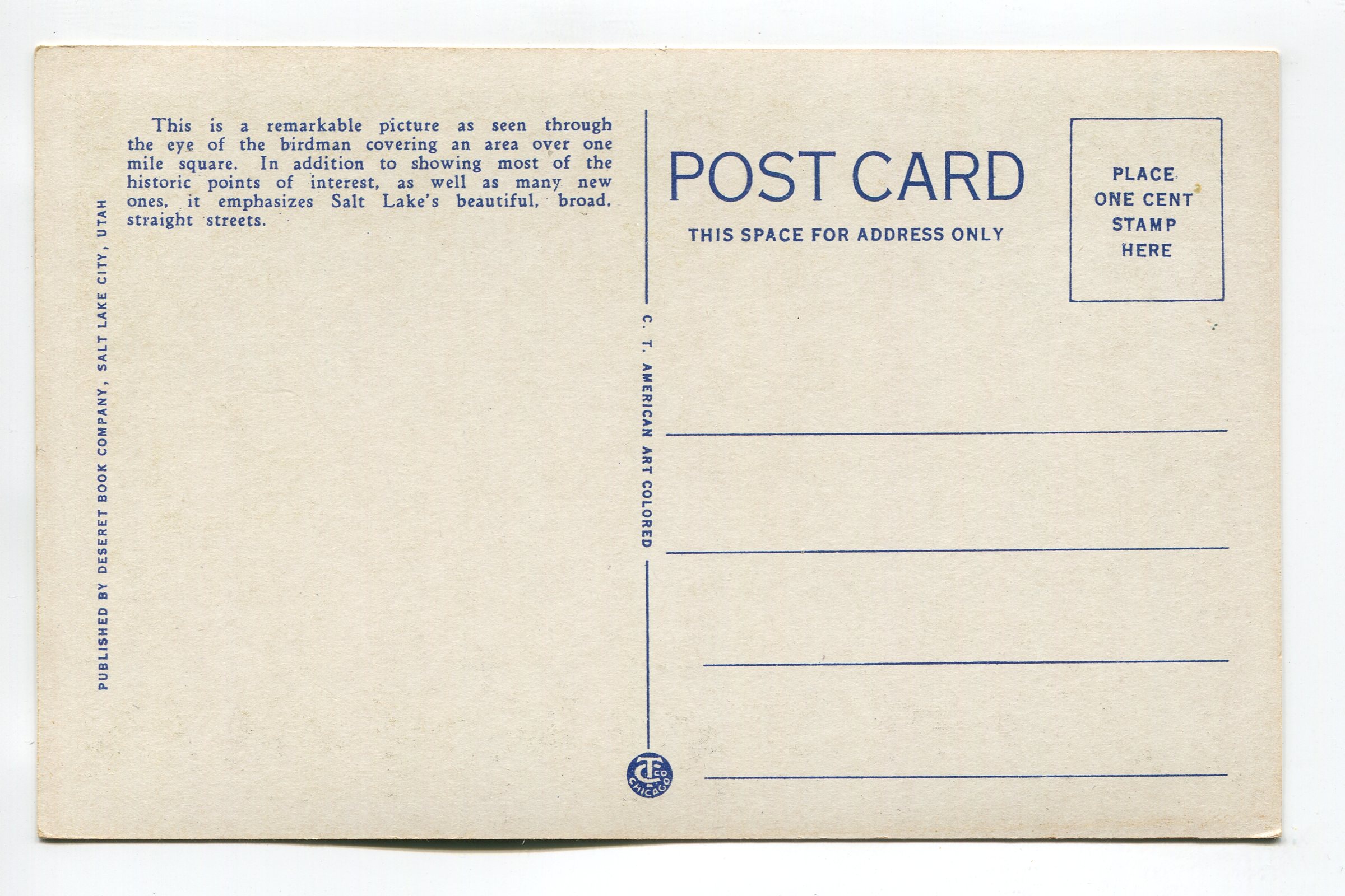 Birds Eye View of Business Section Salt Lake City Utah postcard