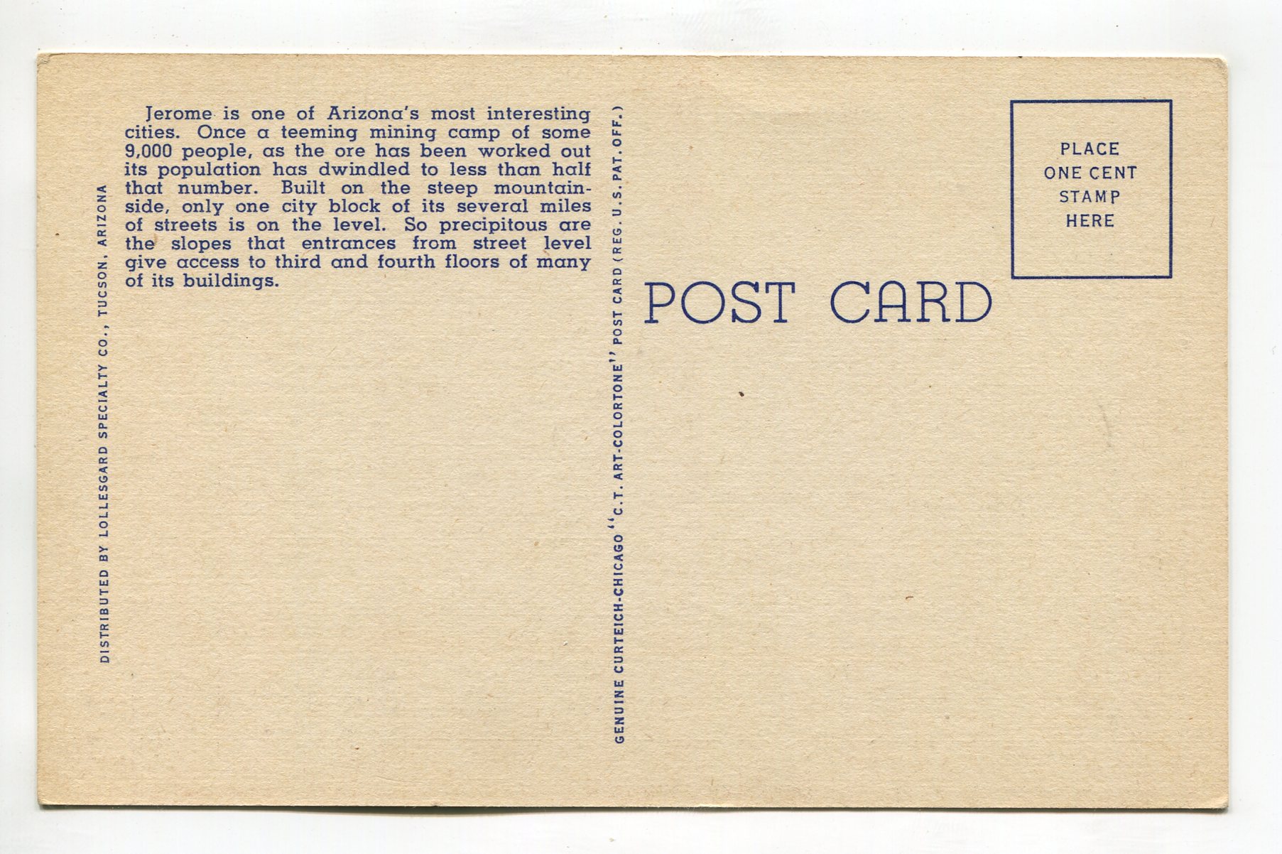Bird’s-Eye View of Jerome Arizona postcard