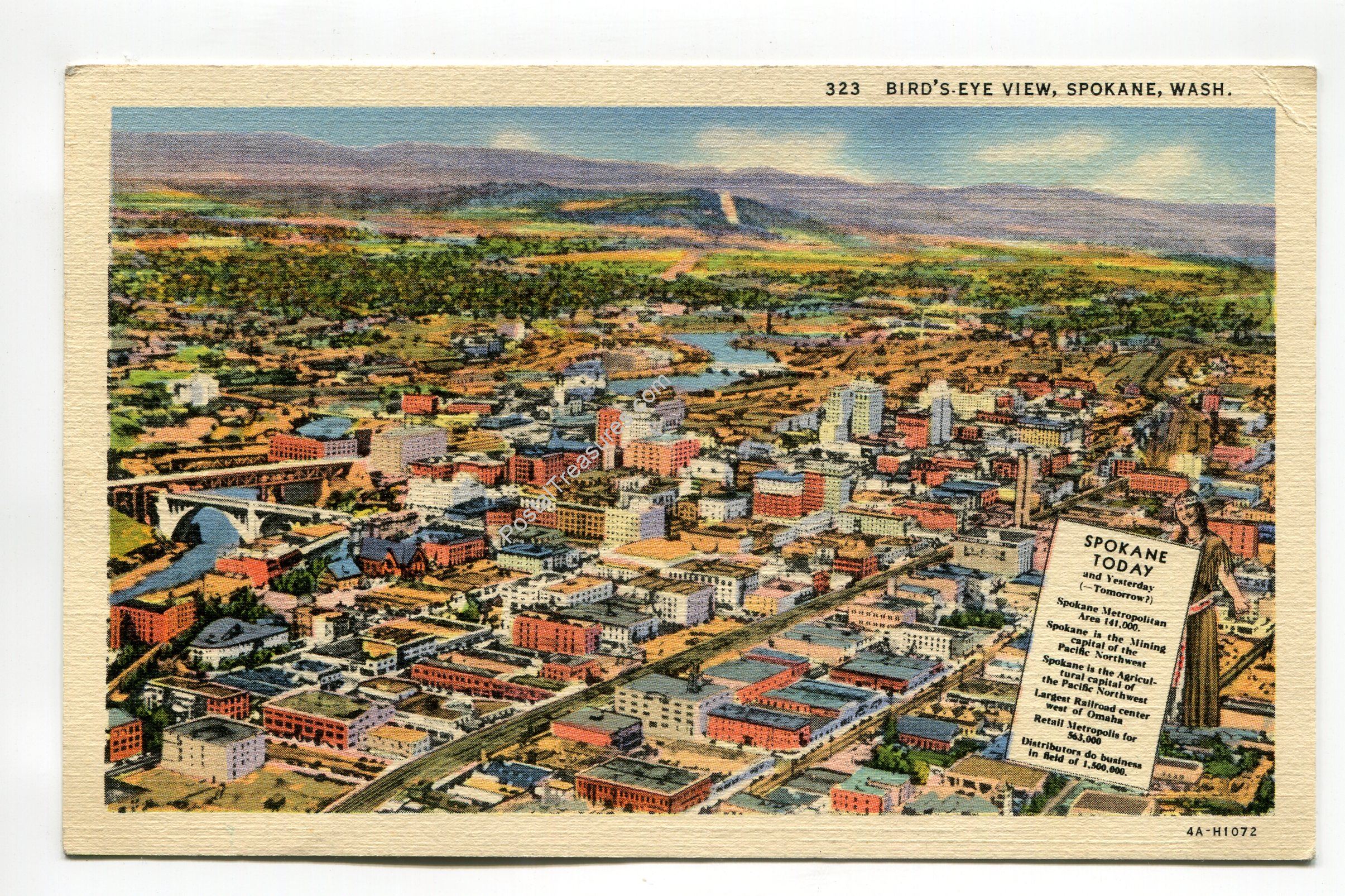 Bird’s-eye view Spokane Washington postcard