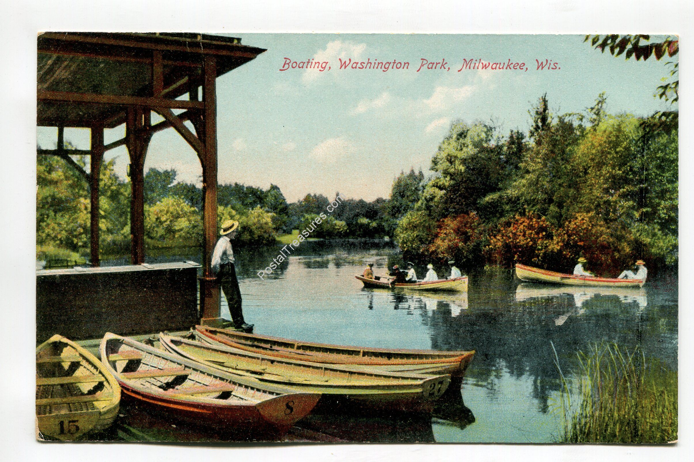 Boating Washington Park Milwaukee Wisconsin postcard