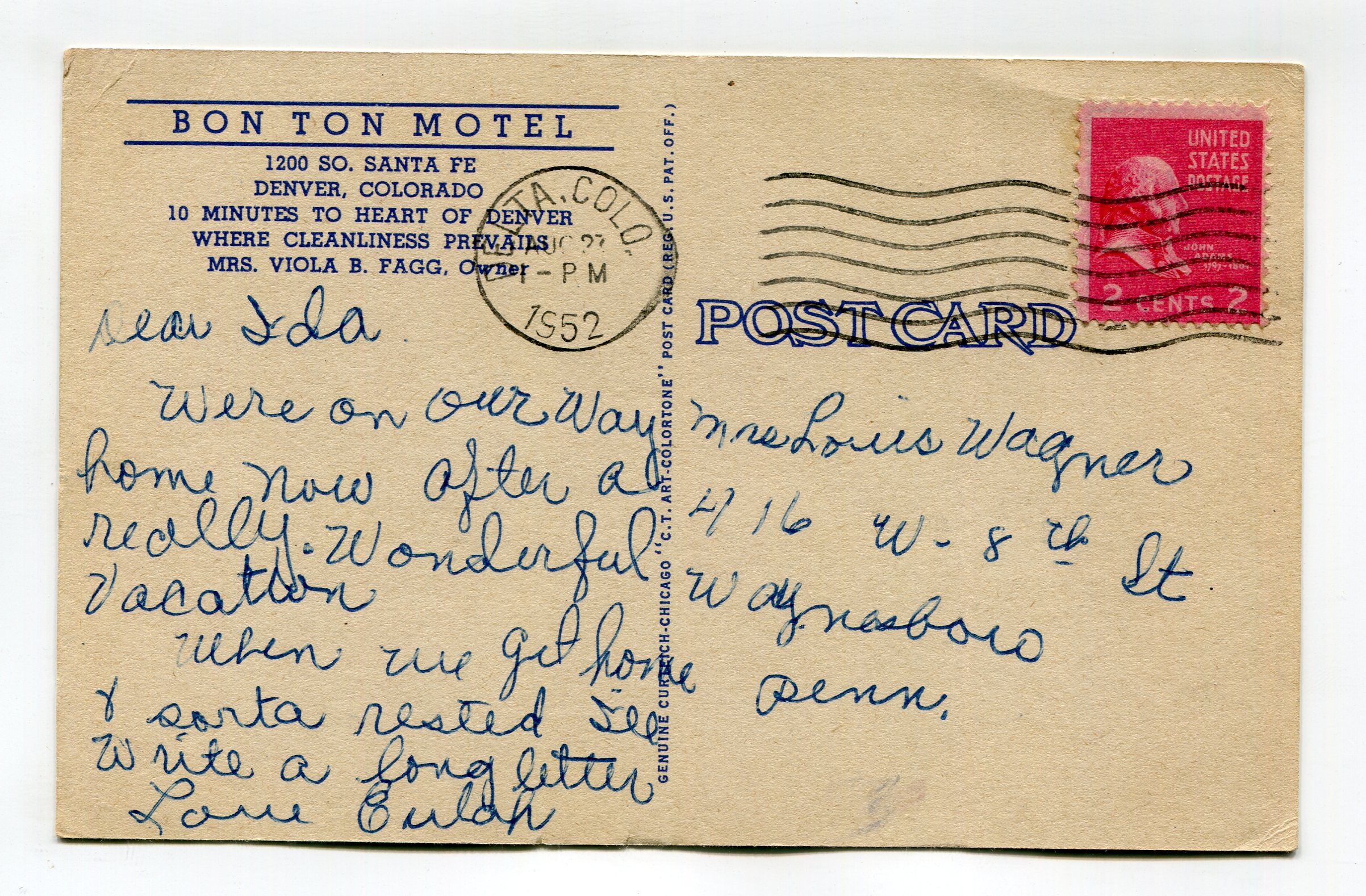 Bon Ton Motel 1200 South Santa Fe Drive Denver Colorado postcard