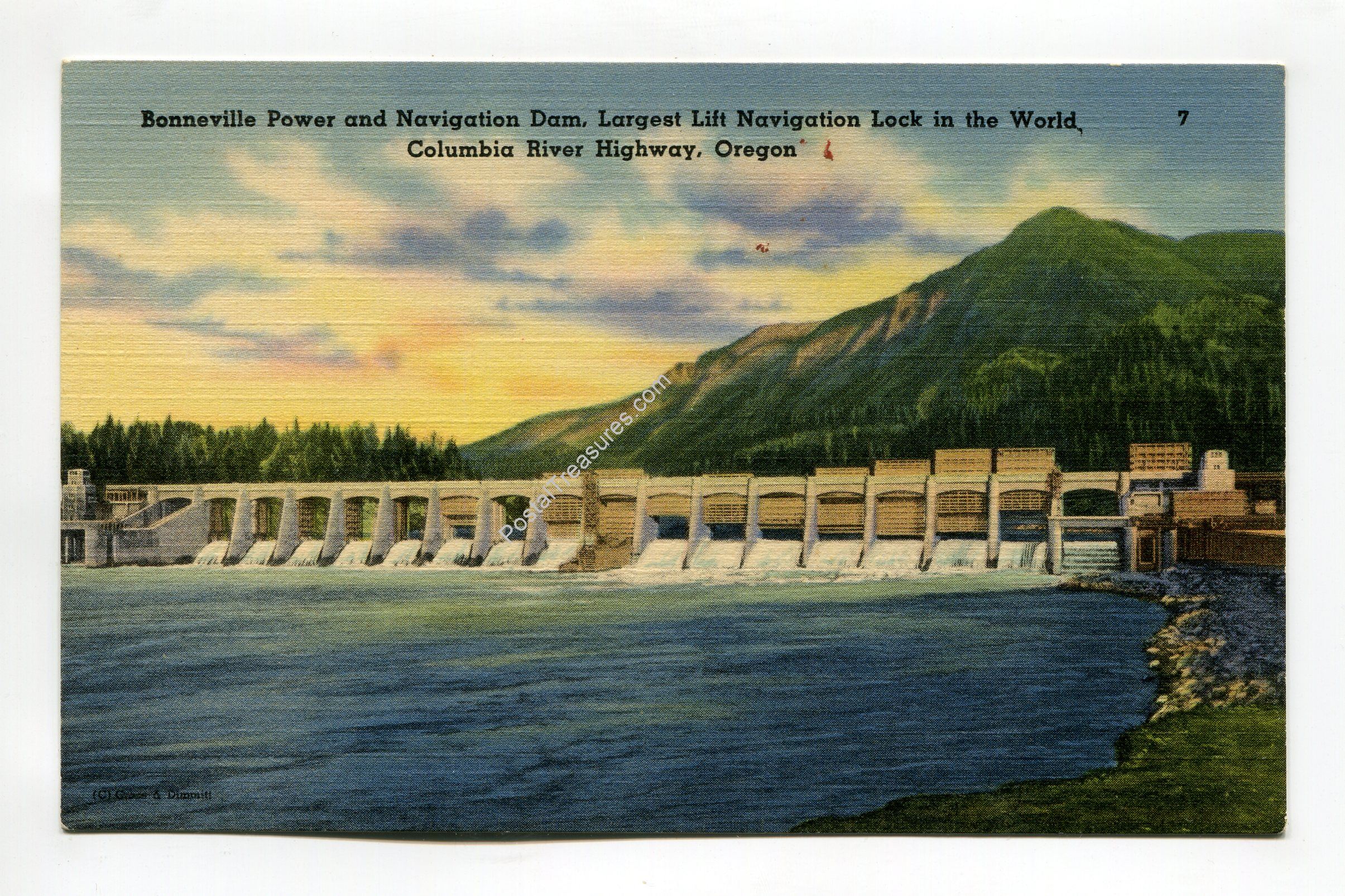 Bonneville Power and Navigation Dam largest Lift Navigation Lock in World Oregon postcard
