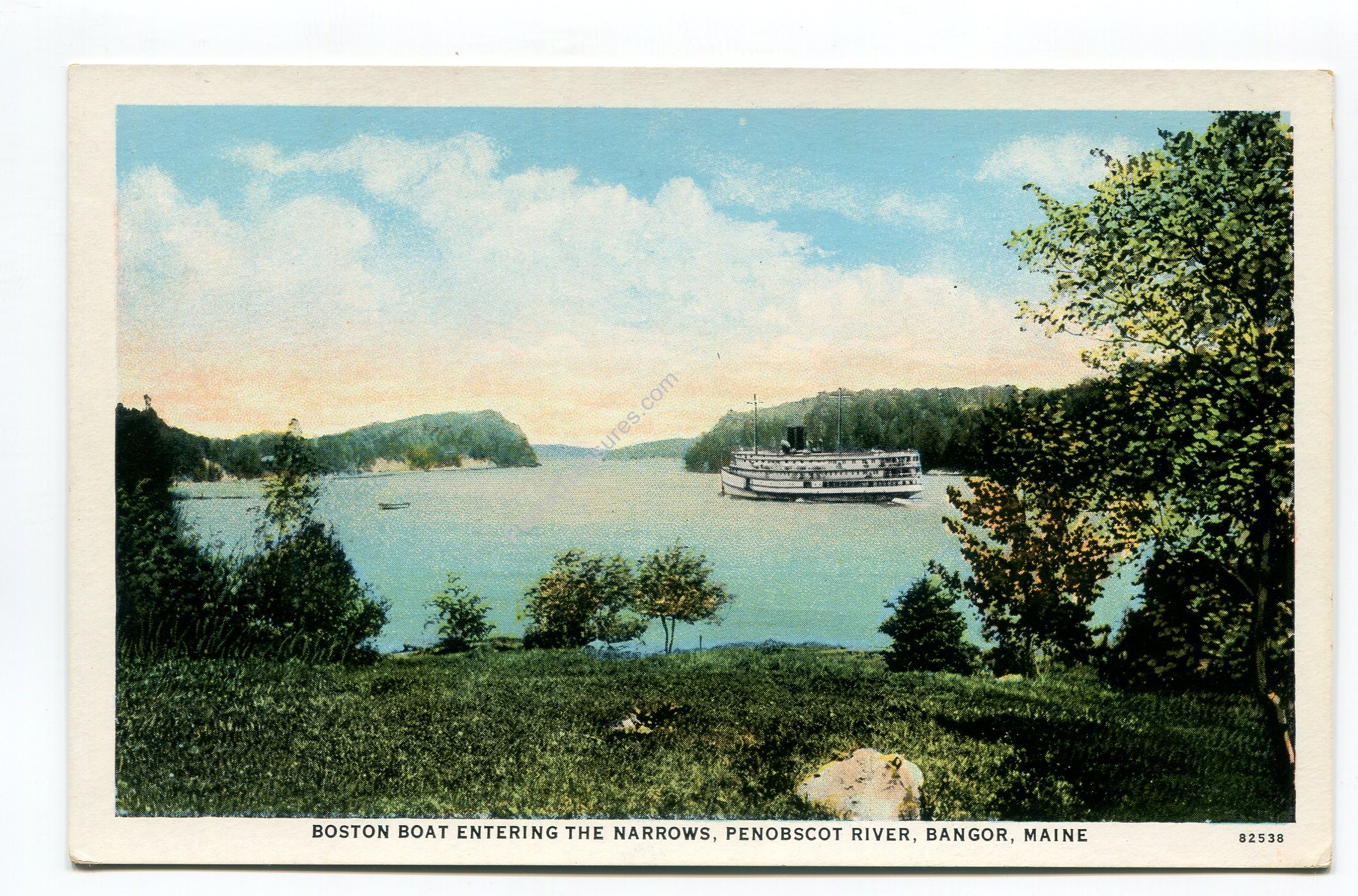 Boston Boat entering The Narrows Penobscot River Bangor Maine postcard