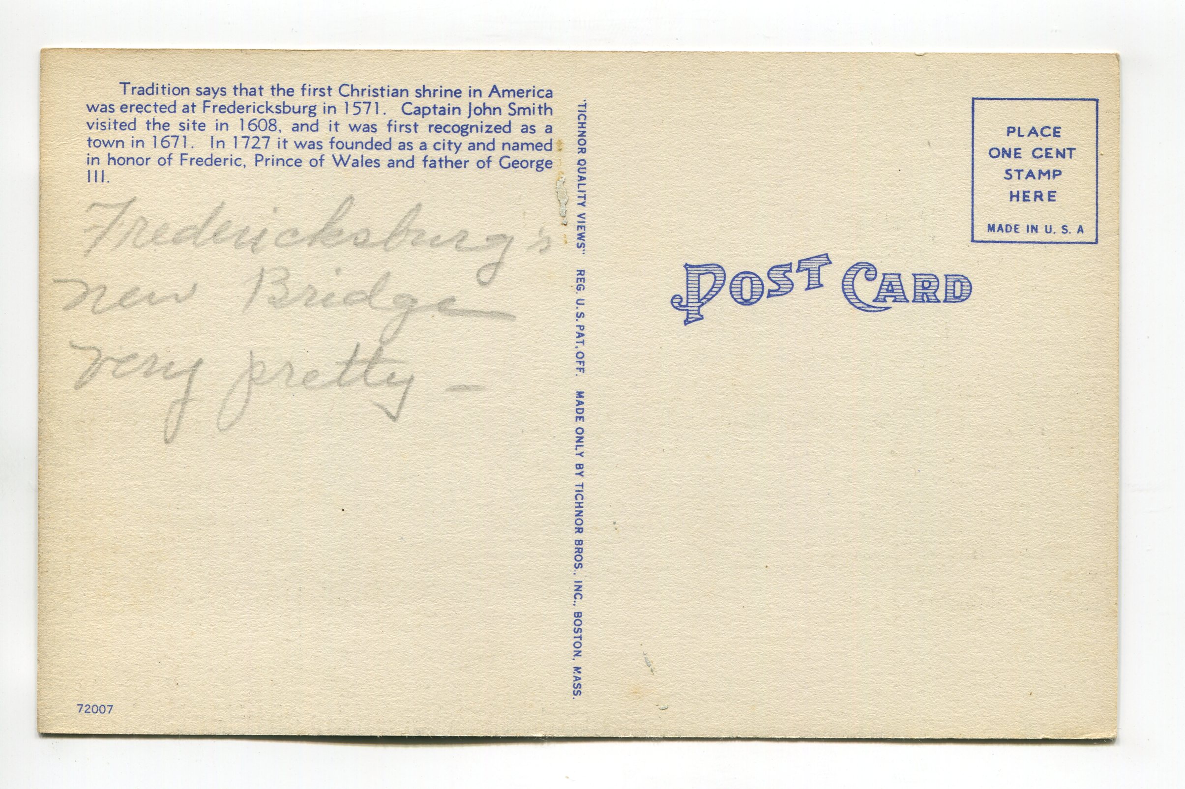 Bridge and Skyline of Fredericksburg Virginia postcard