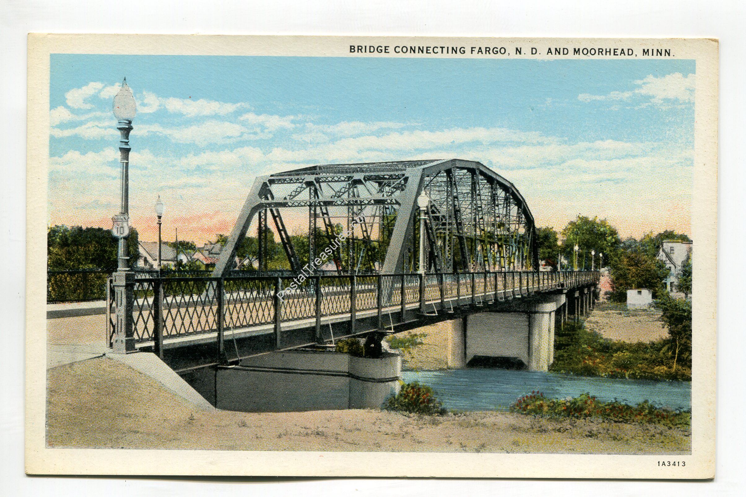 Bridge connecting Fargo North Dakota and Moorhead Minnesota postcard