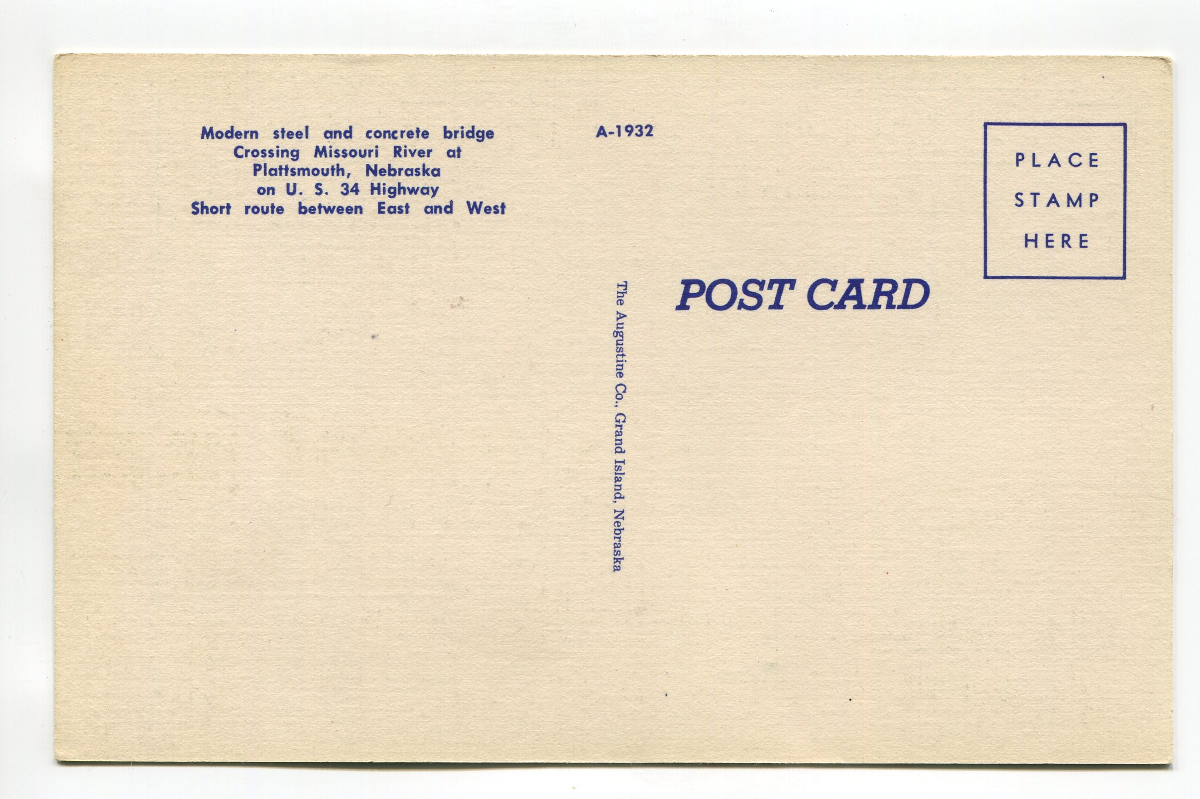 Bridge on US Highway 34 at Plattsmouth Nebraska postcard