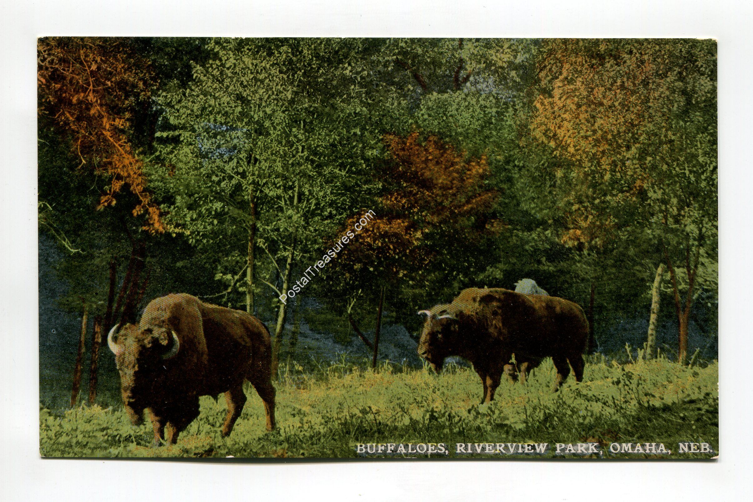 Buffaloes Riverview Park Omaha Nebraska postcard