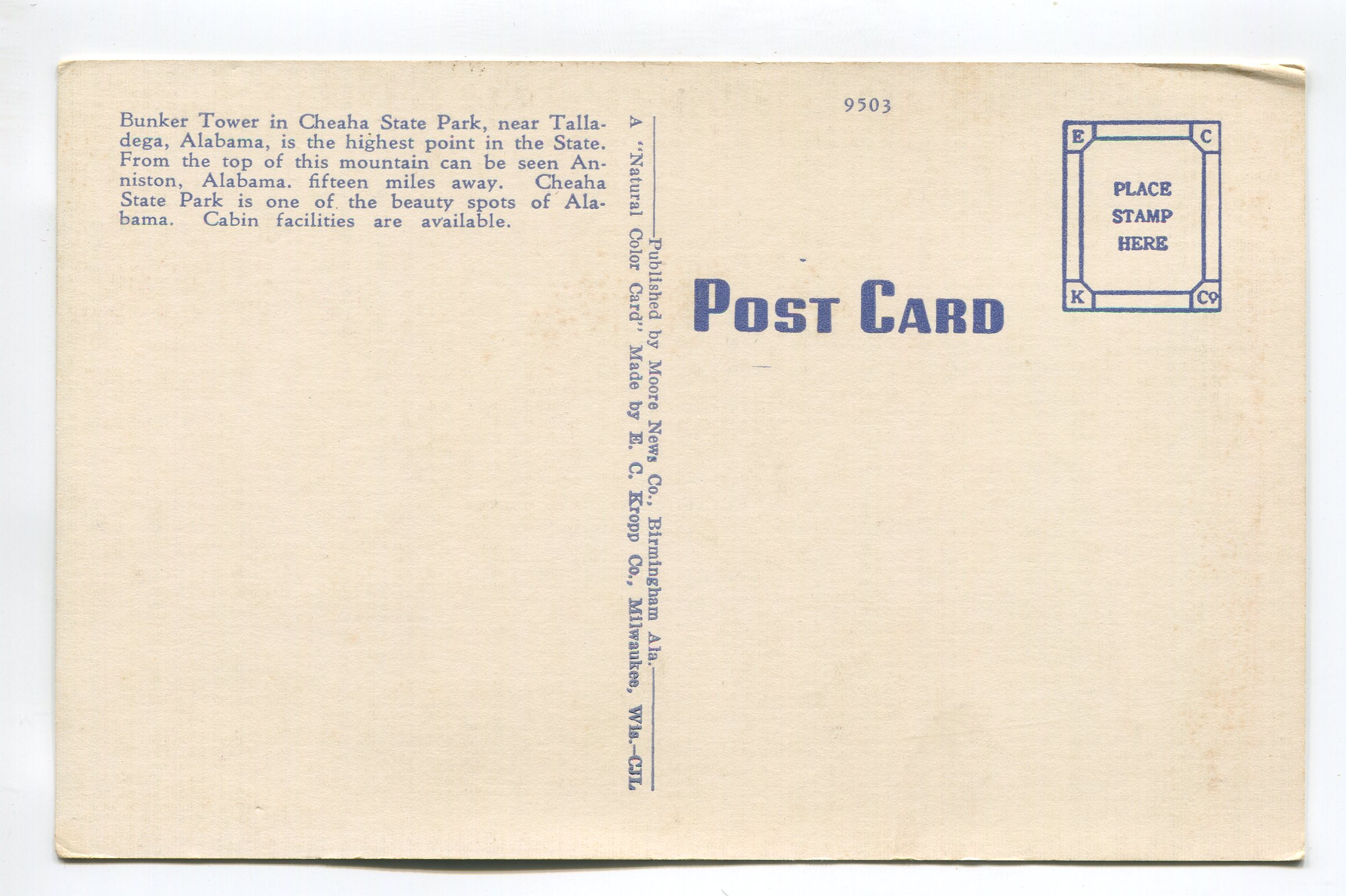 Bunker Tower Mt. Cheaha State Park Alabama postcard