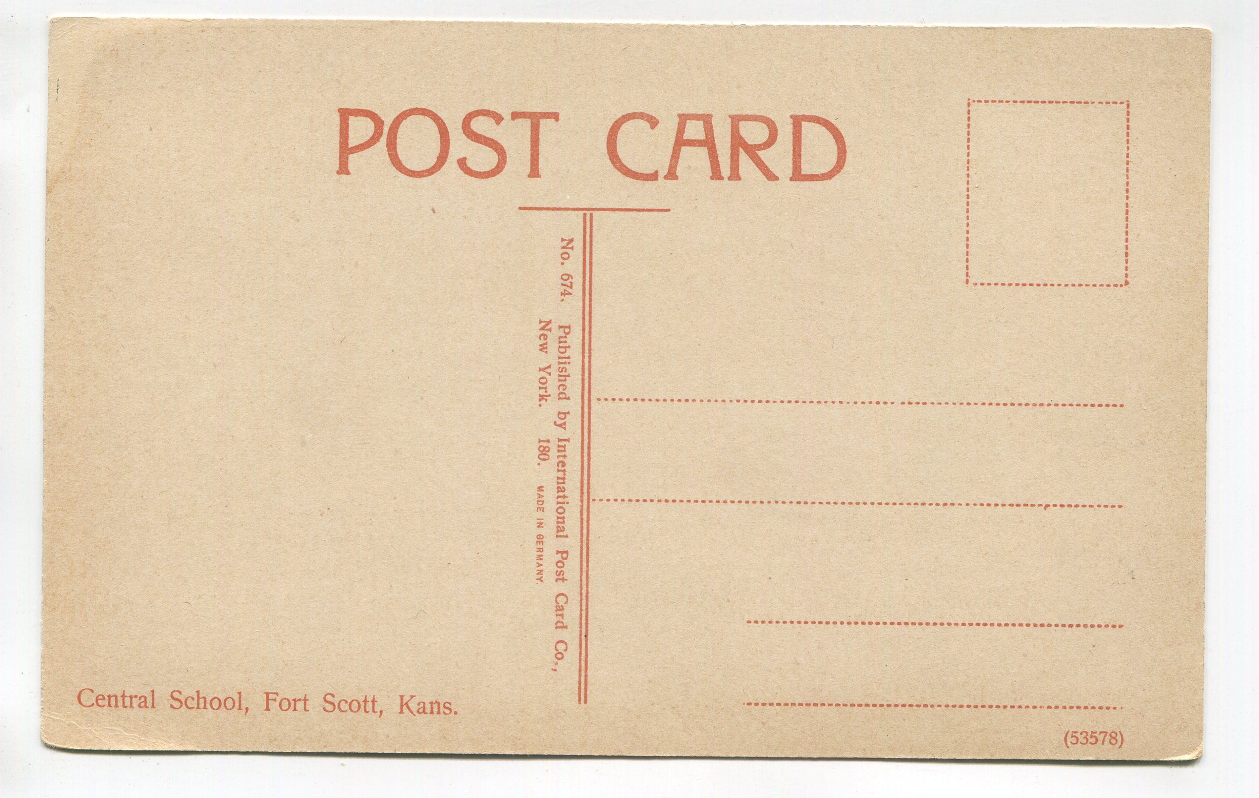 Central School Fort Scott Kansas postcard