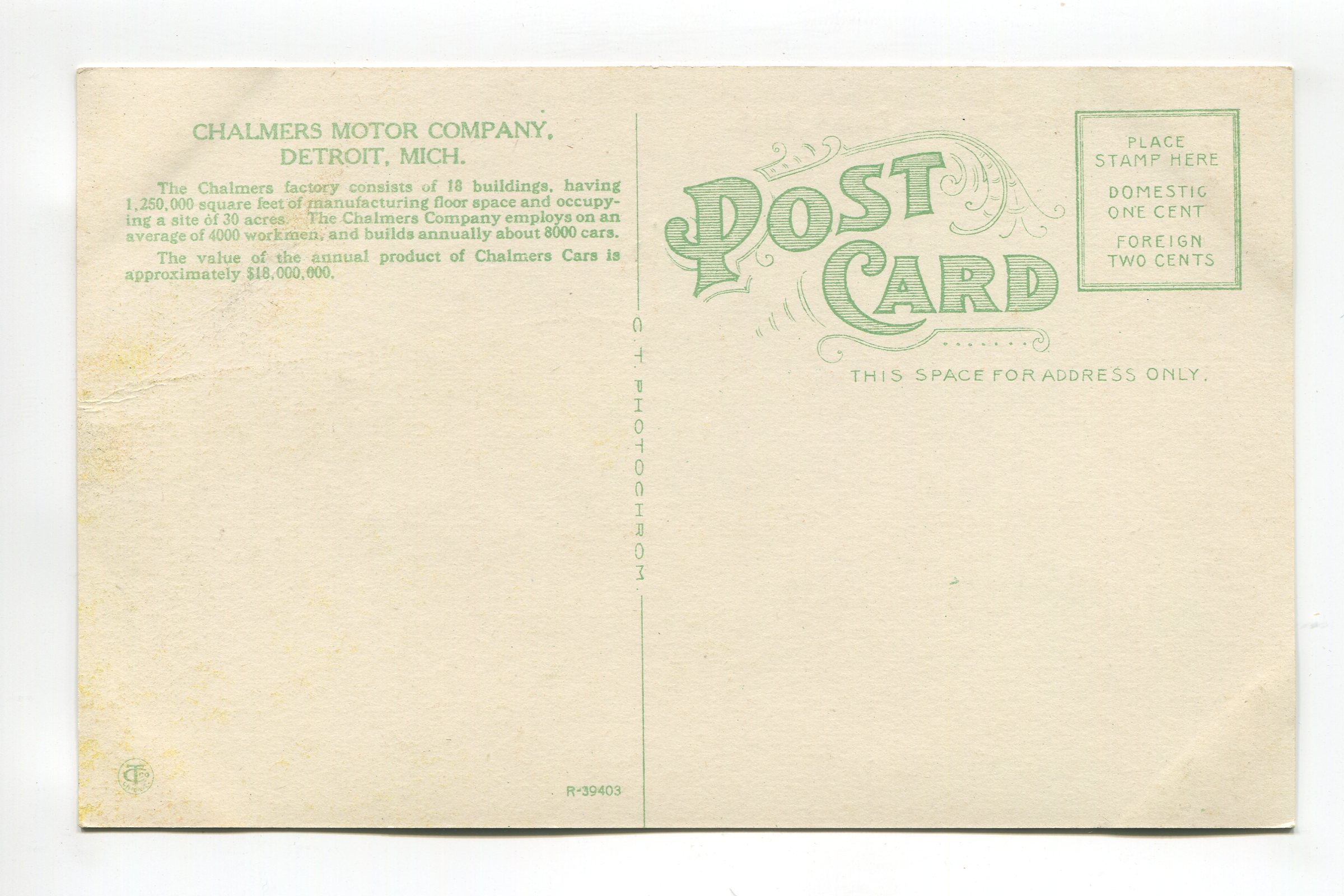 Chalmers Motor Company Detroit Michigan postcard
