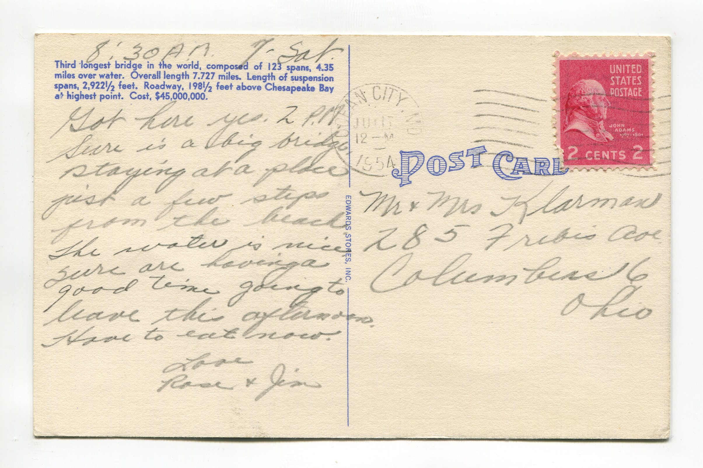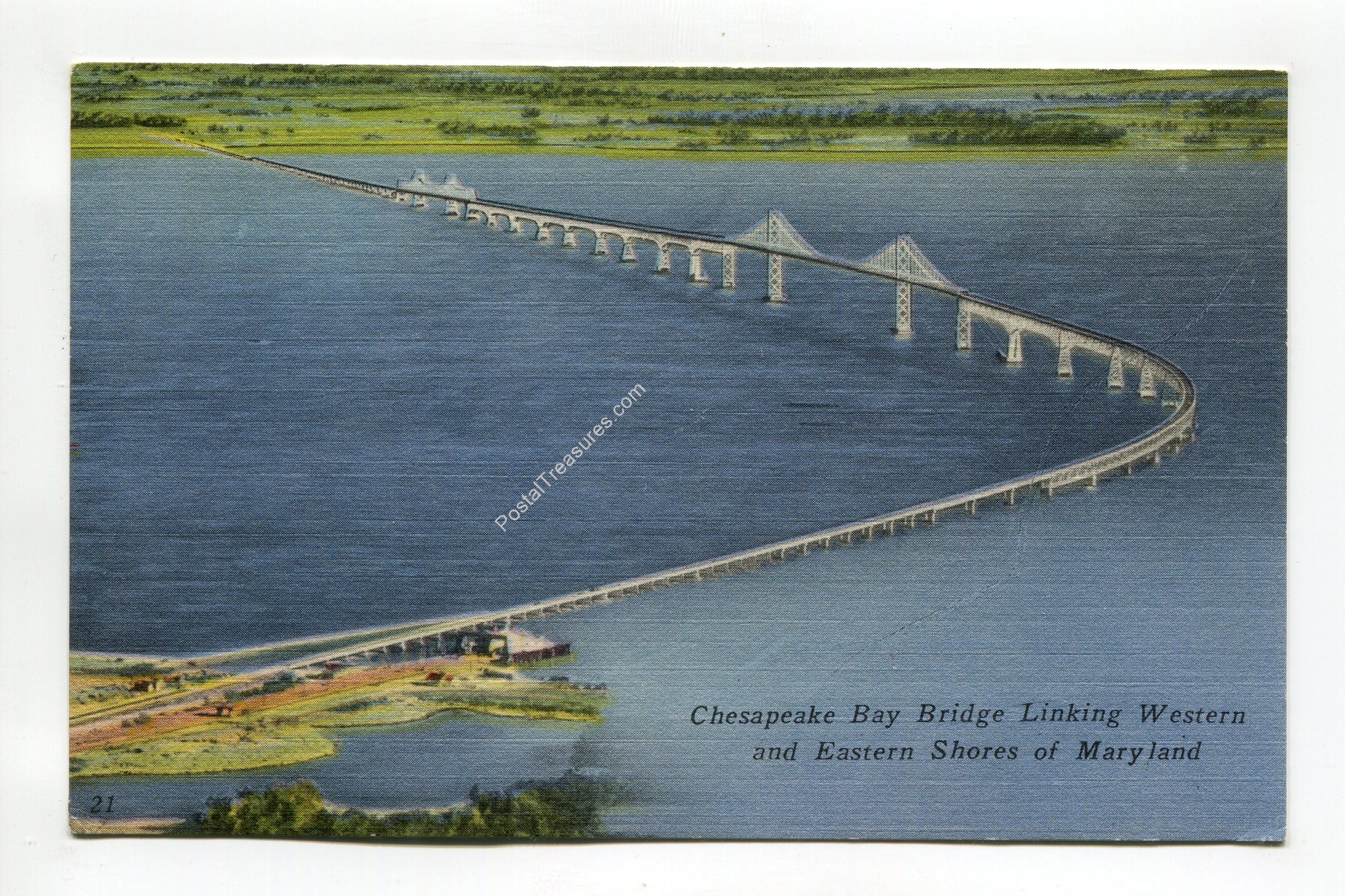 Chesapeake Bay Bridge linking western and eastern shores of Maryland postcard