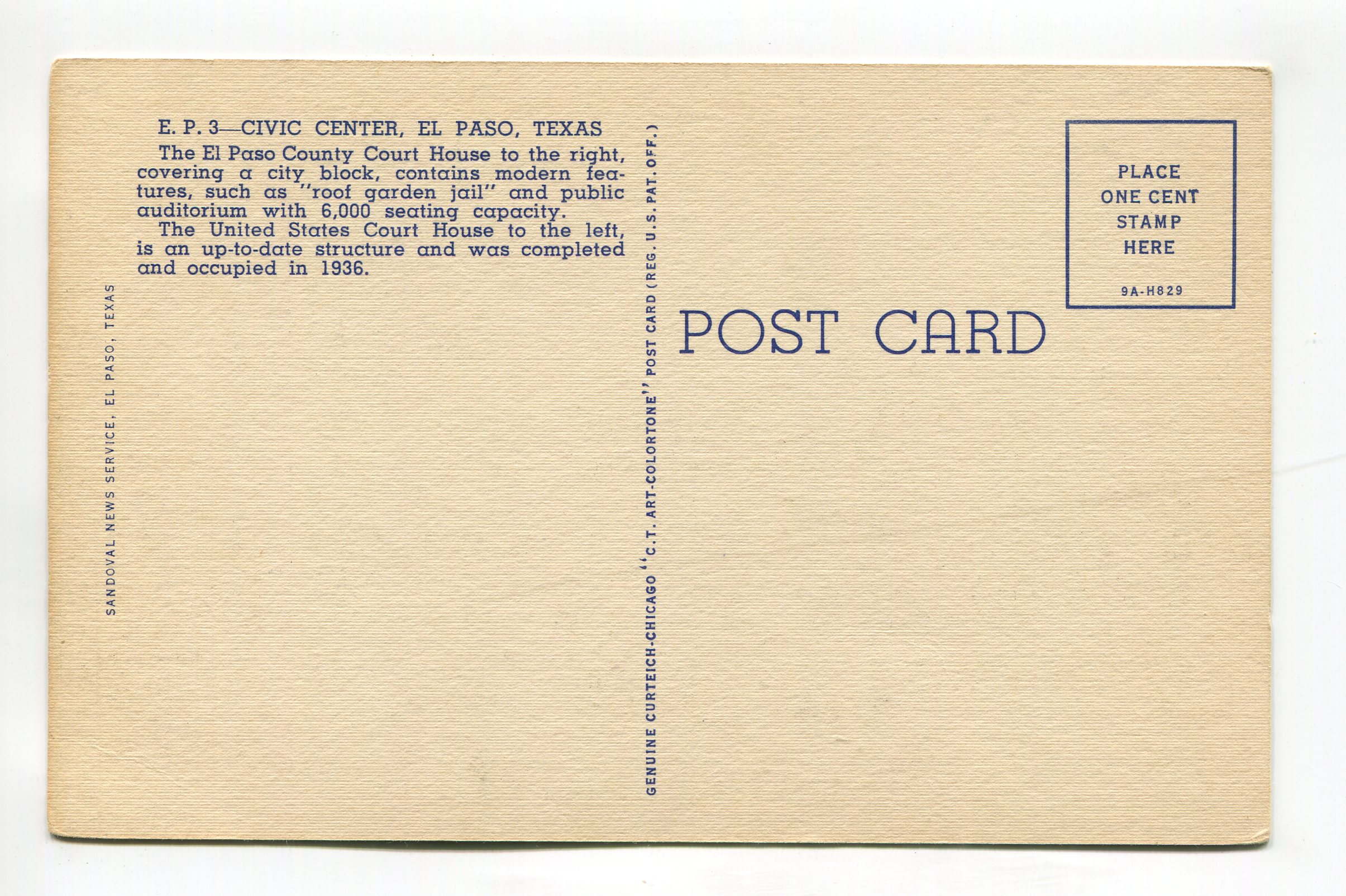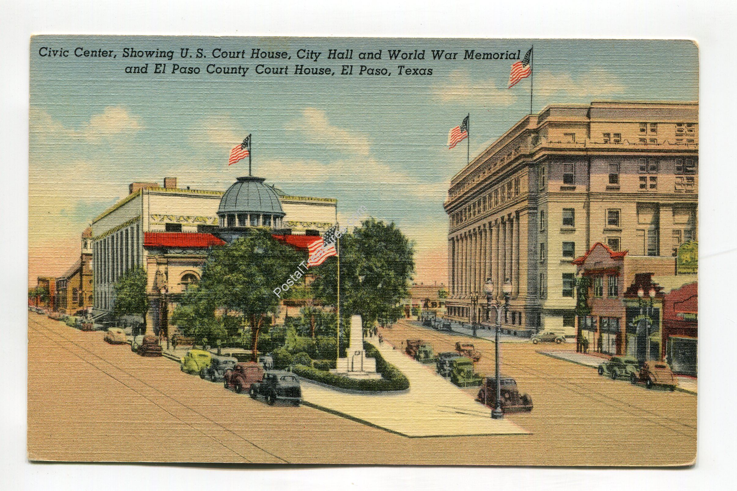 Civic Center showing US Court House City Hall and World War Memorial El Paso Texas postcard
