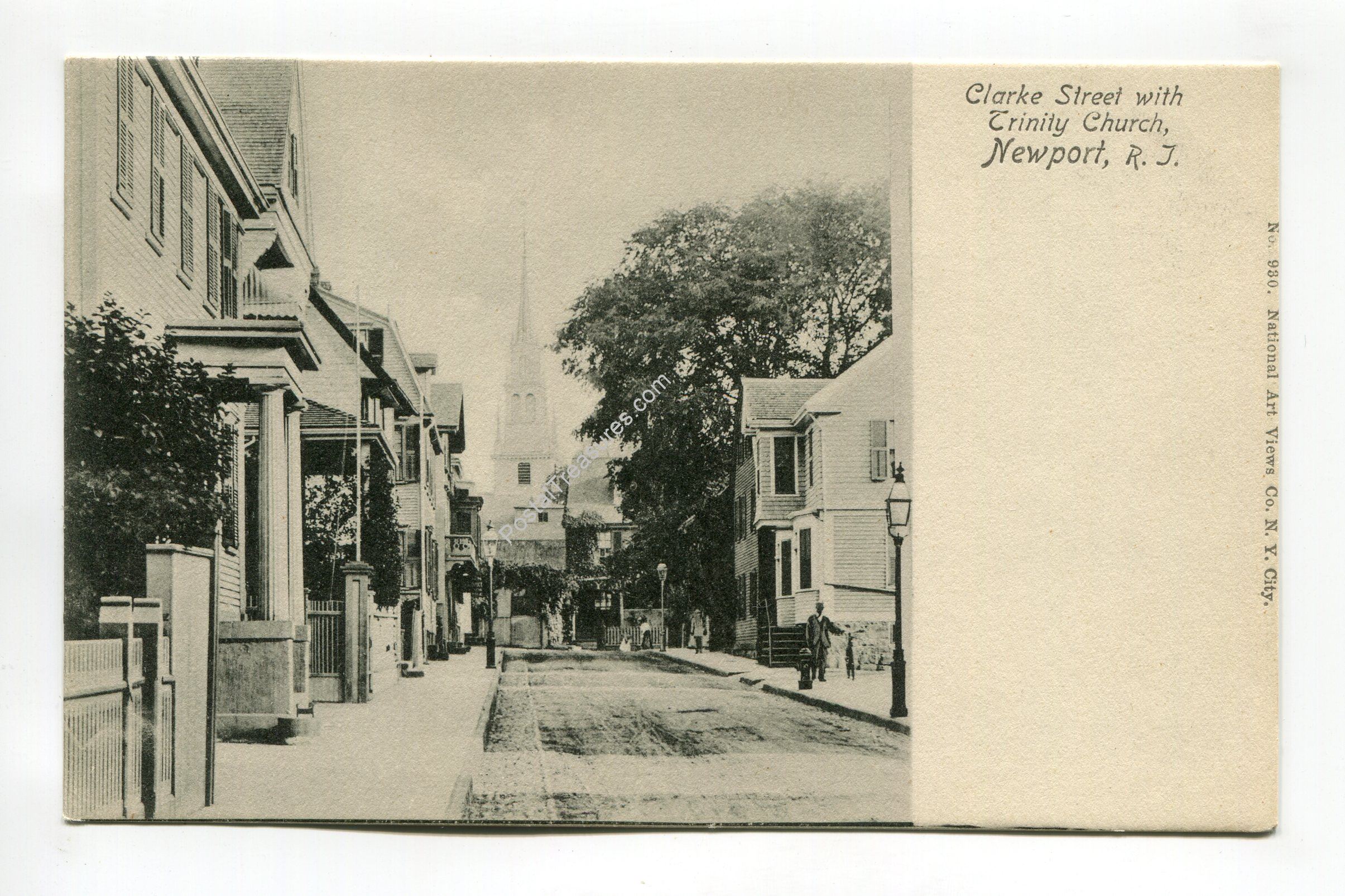 Clark Street with Trinity Church Newport Rhode Island postcard