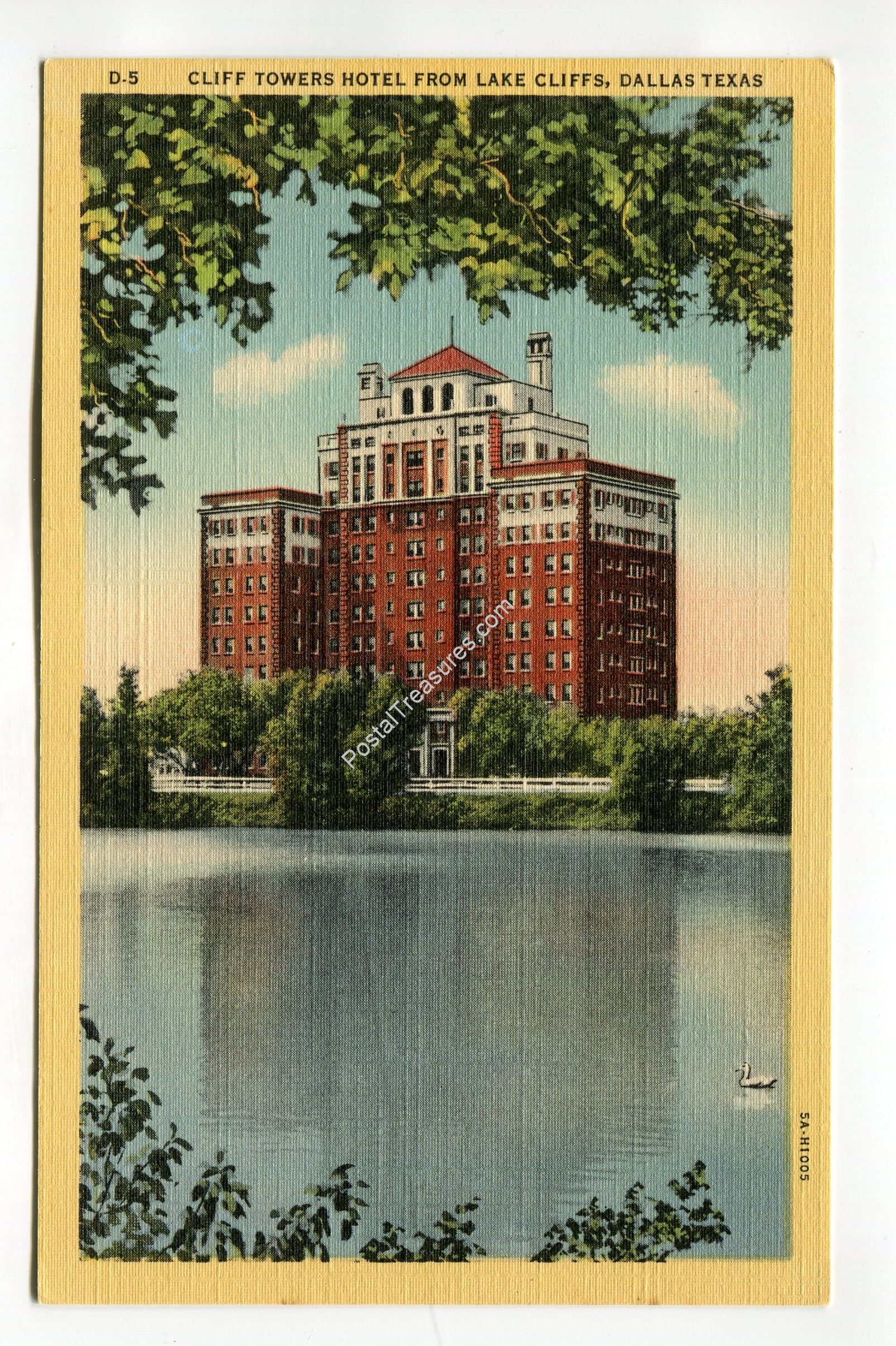 Cliff Tower Hotel from Lake Cliffs Dallas Texas postcard