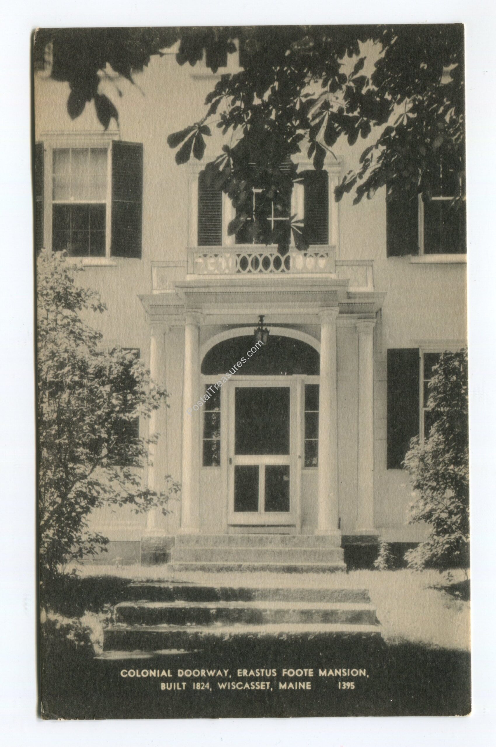 Colonial Doorway Erastus Foote Mansion Built 1824 Wiscasset Maine postcard