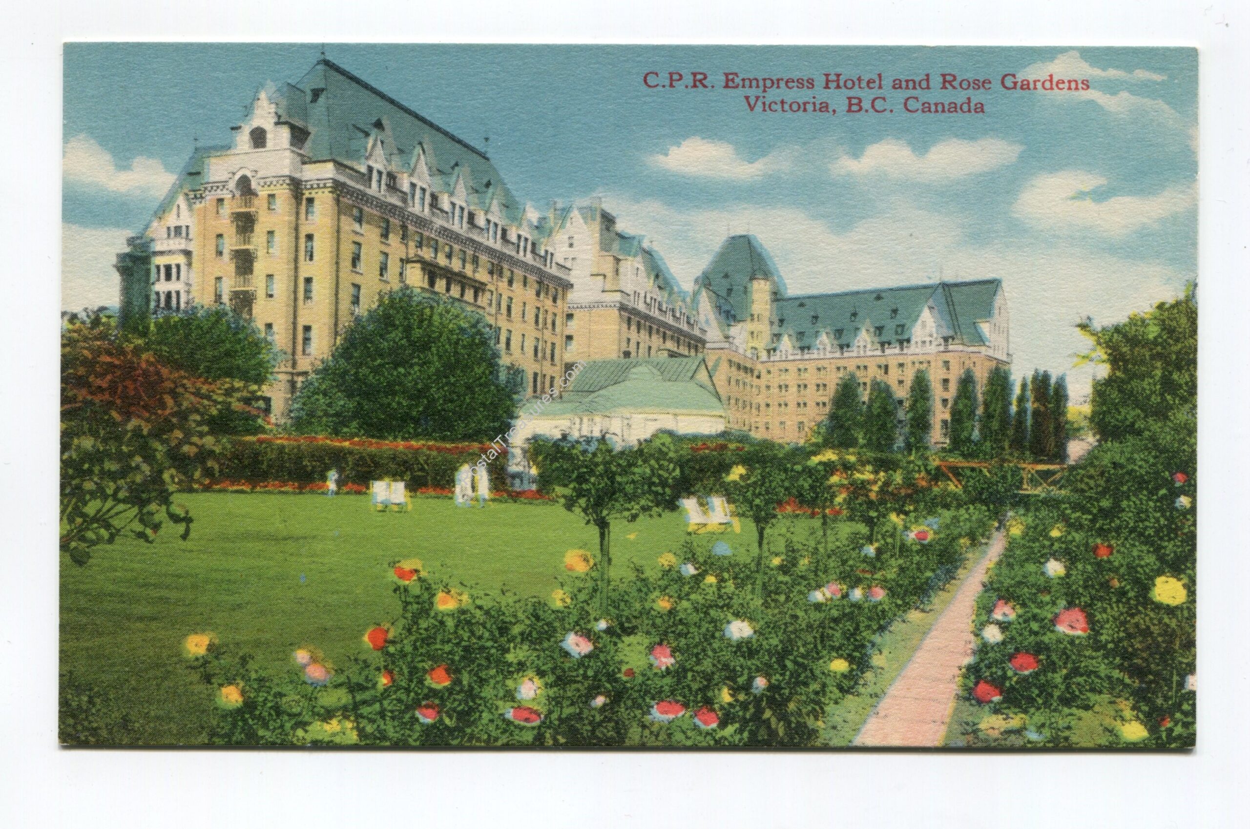 CPR Empress Hotel and Rose Gardens Victoria British Columbia Canada postcard