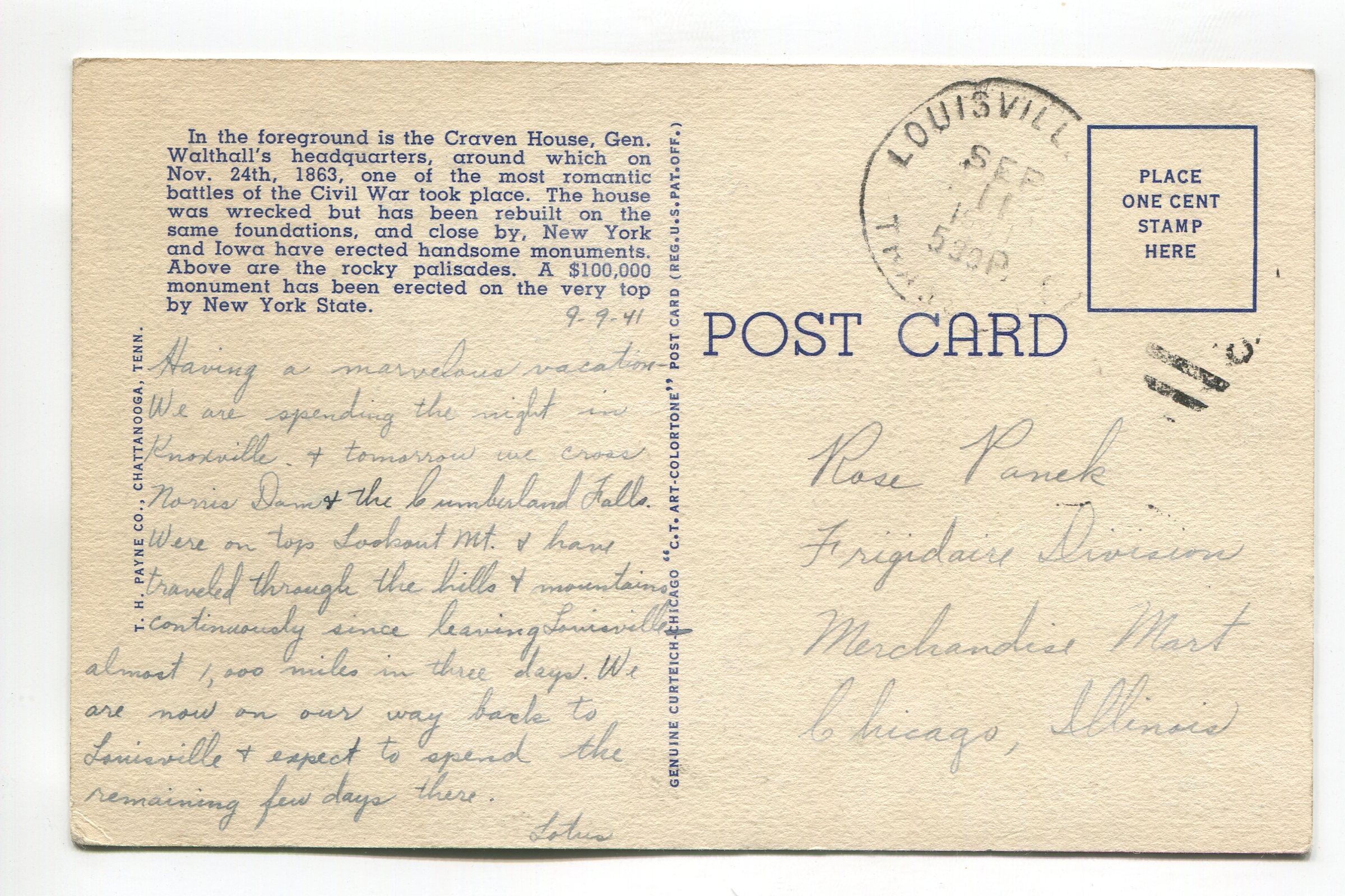 Cravens House General Walthalls Headquarters Lookout Mountain Chattanooga Tennessee postcard