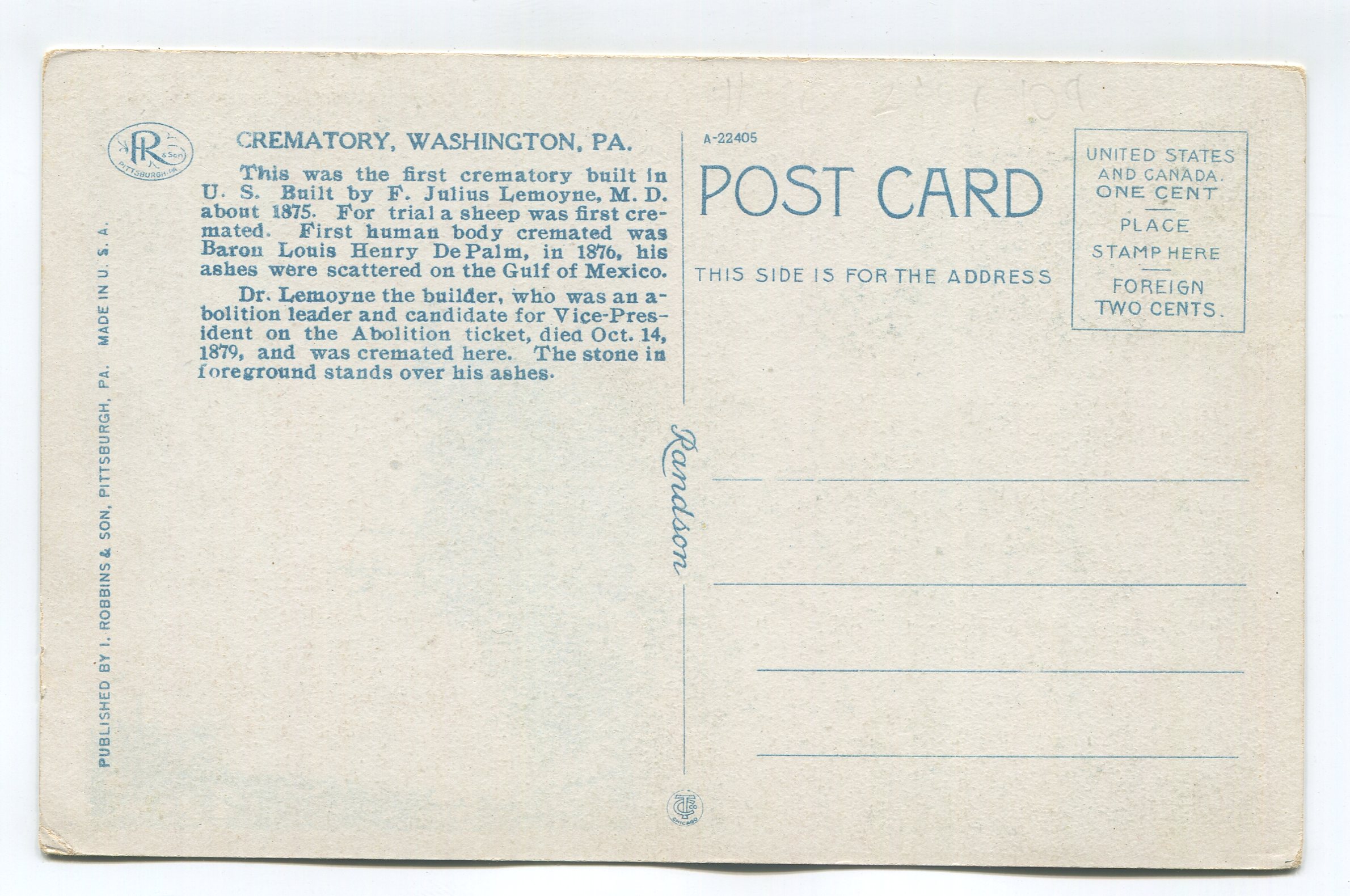 Crematory Washington Pennsylvania postcard