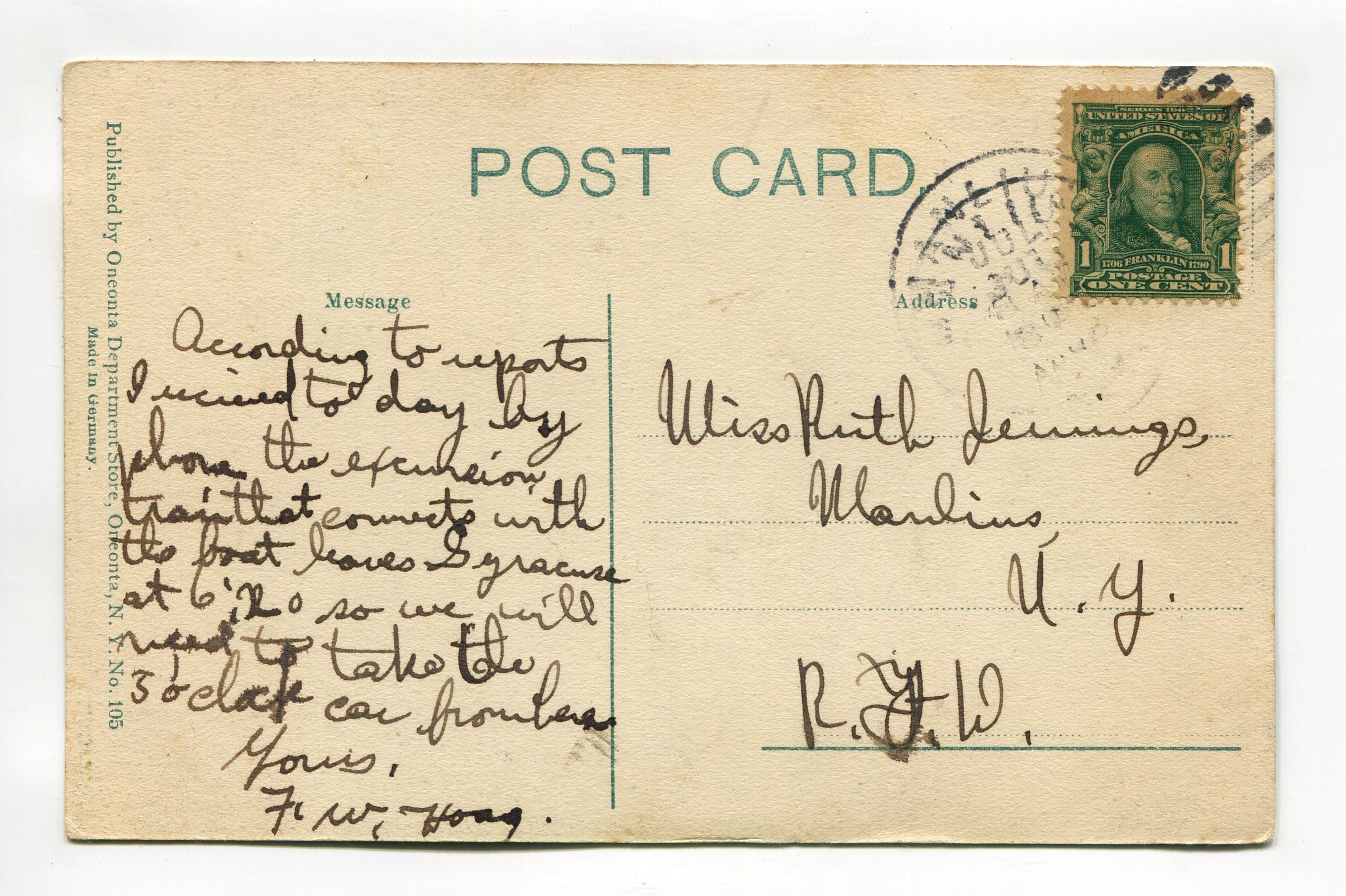 D and H Depot from the Island Oneonta New York postcard