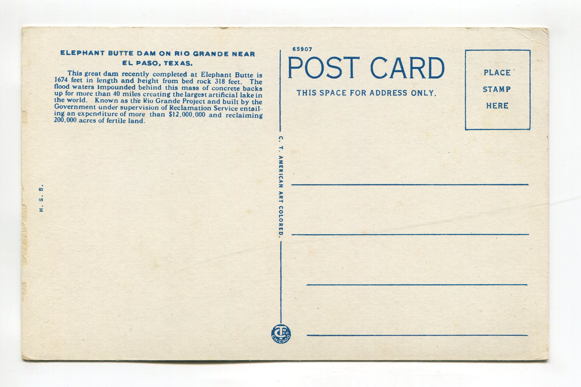 Dam at Elephant Butte on Rio Grande near El Paso Texas postcard
