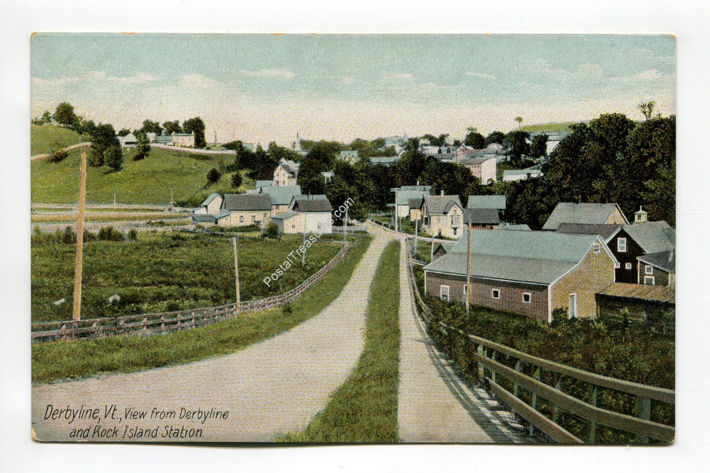 View from Derbyline and Rock Island Station Derbyline Vermont postcard
