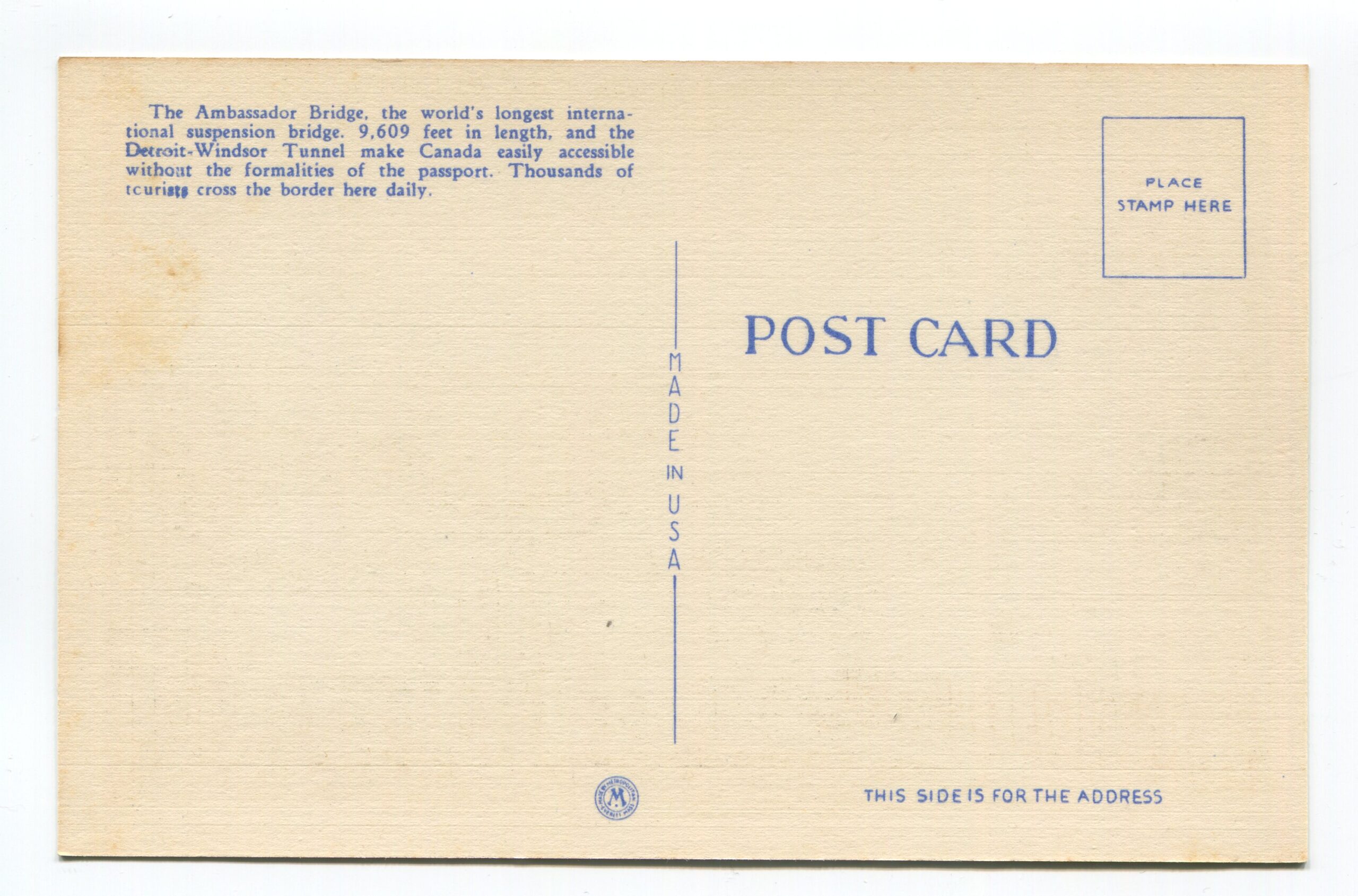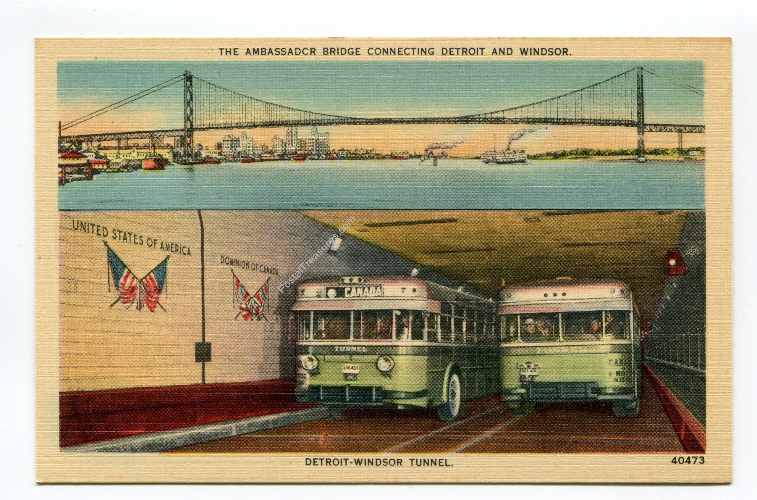 Detroit-Windsor Tunnel Ambassador Bridge connecting Detroit and Windsor postcard