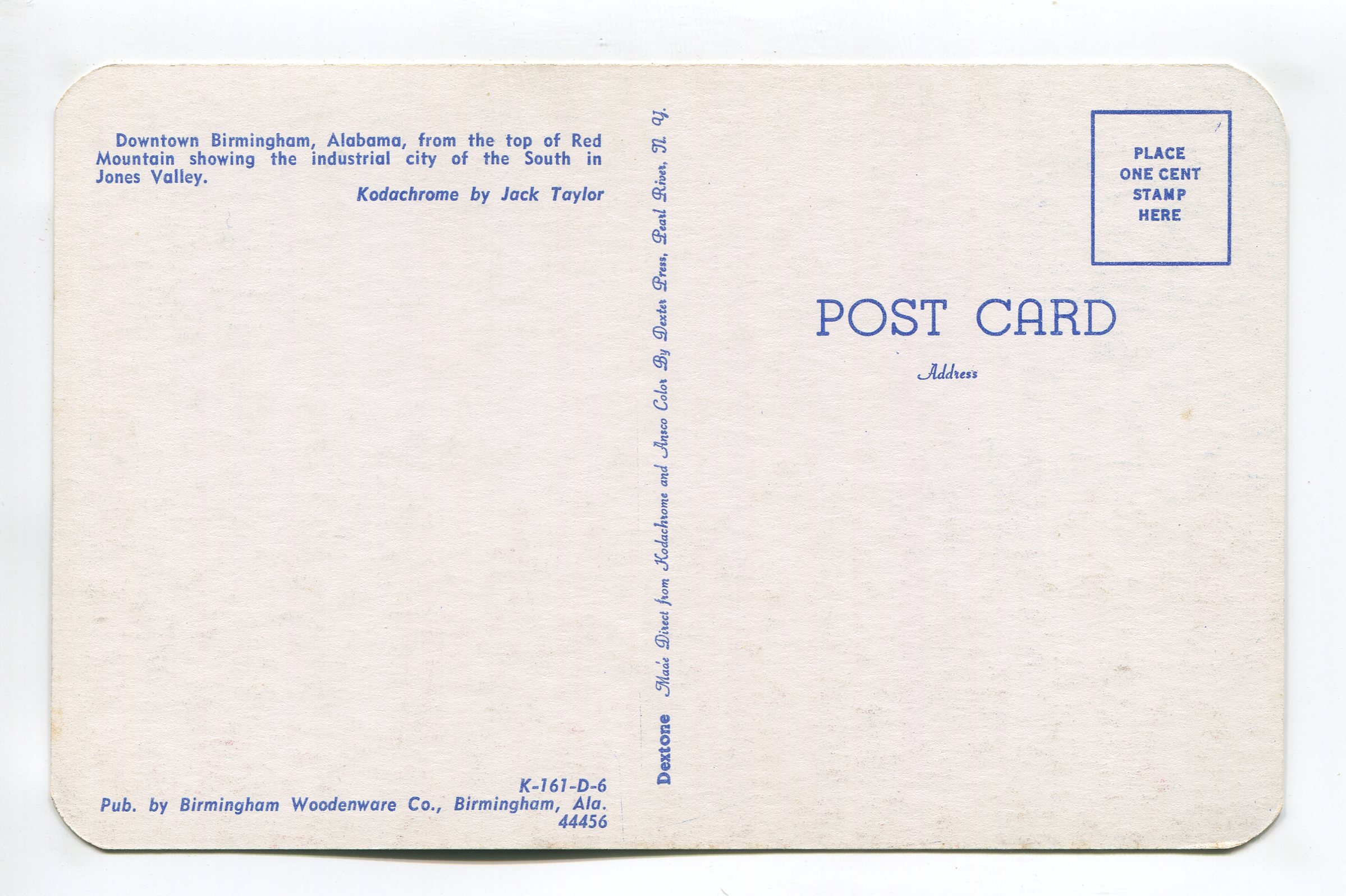 Downtown Birmingham Alabama from the top of Red Mountain postcard