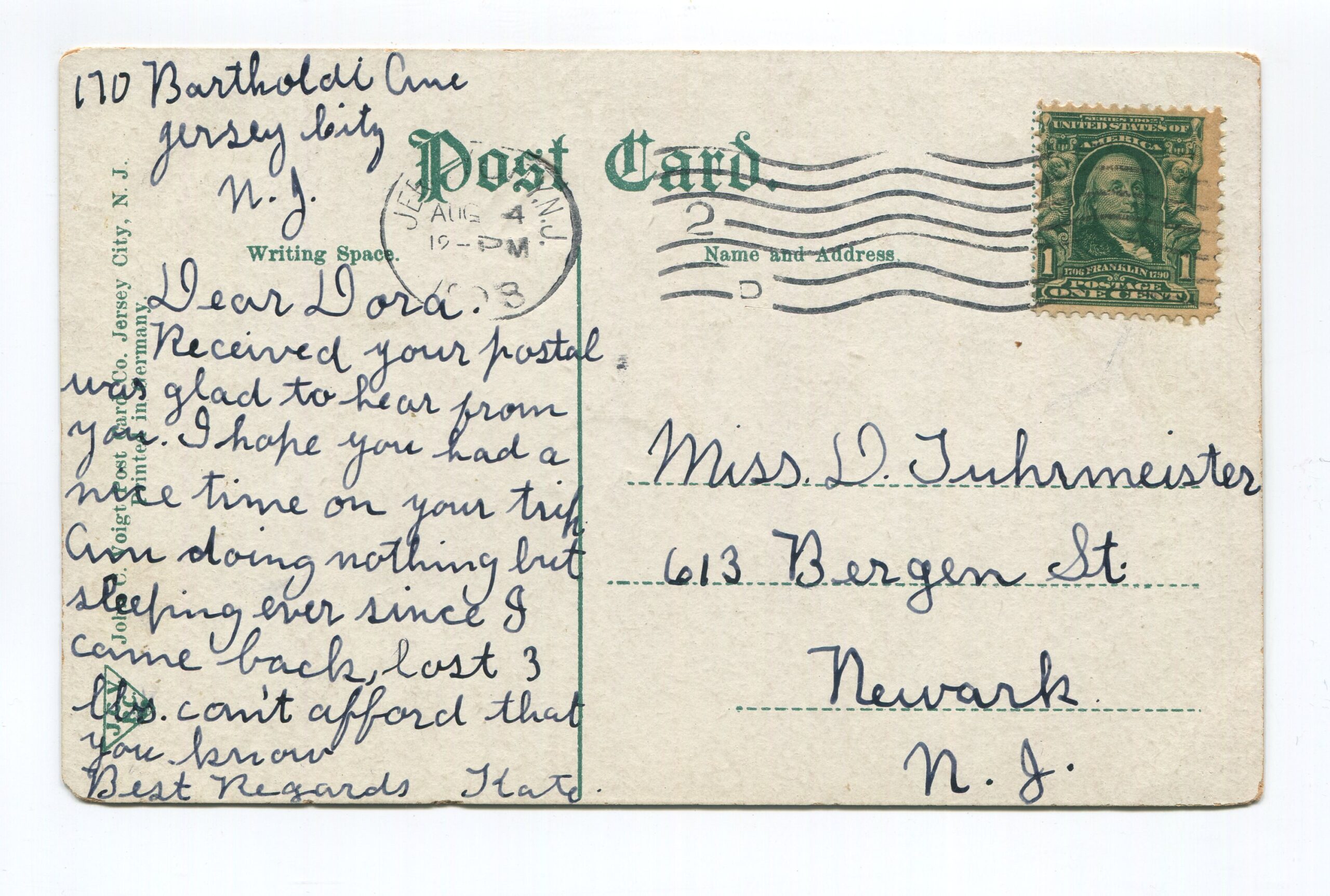 Condition – noticeable corner/edge wear, crease in corners, raised mark due to rear indentation below center of top edge, heavy cancelation marks visible on card front, album impression marks around corners, noticeable marks on card front, soiling/marks