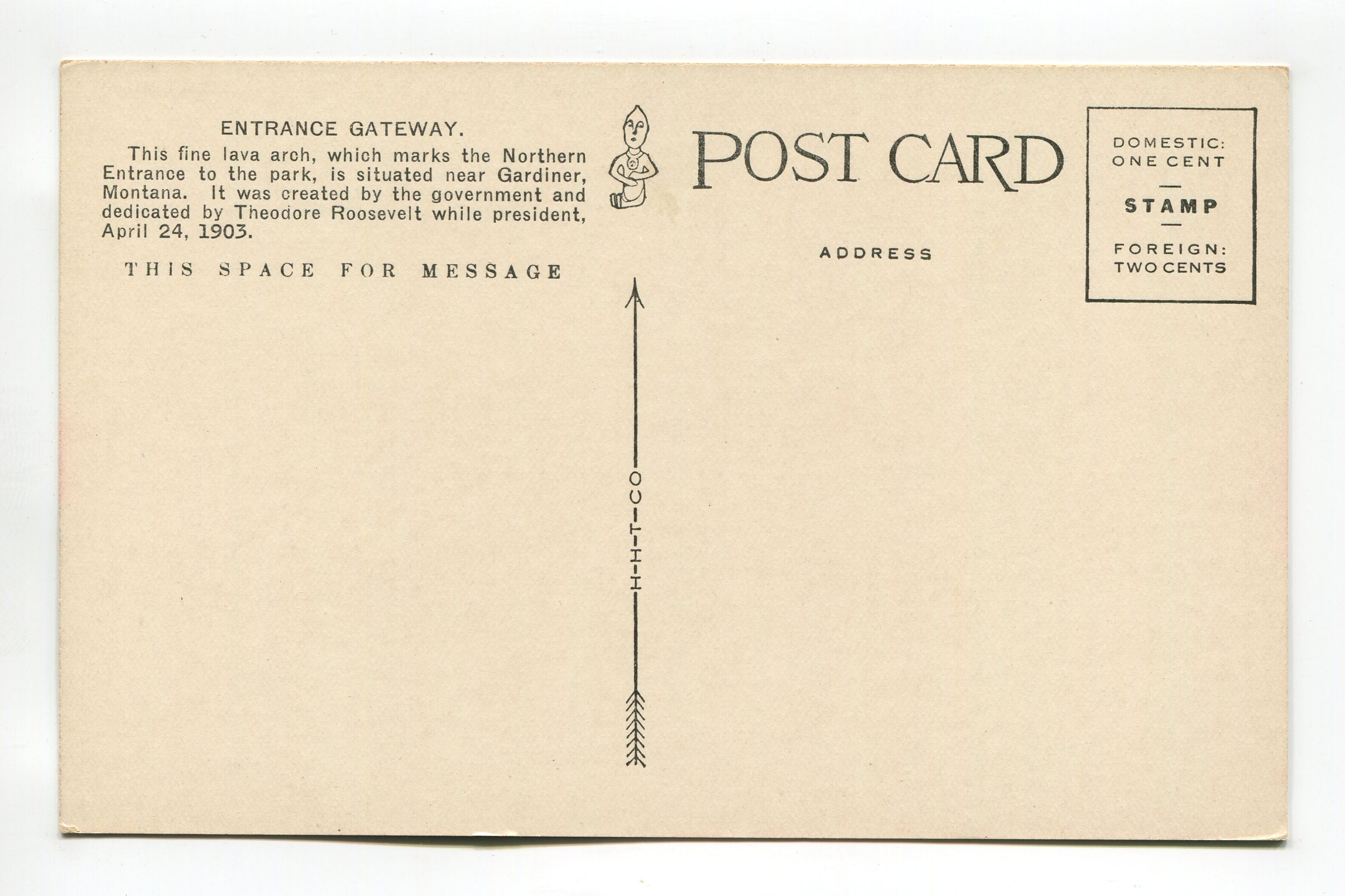 Entrance Gateway to Yellowstone National Park Wyoming postcard